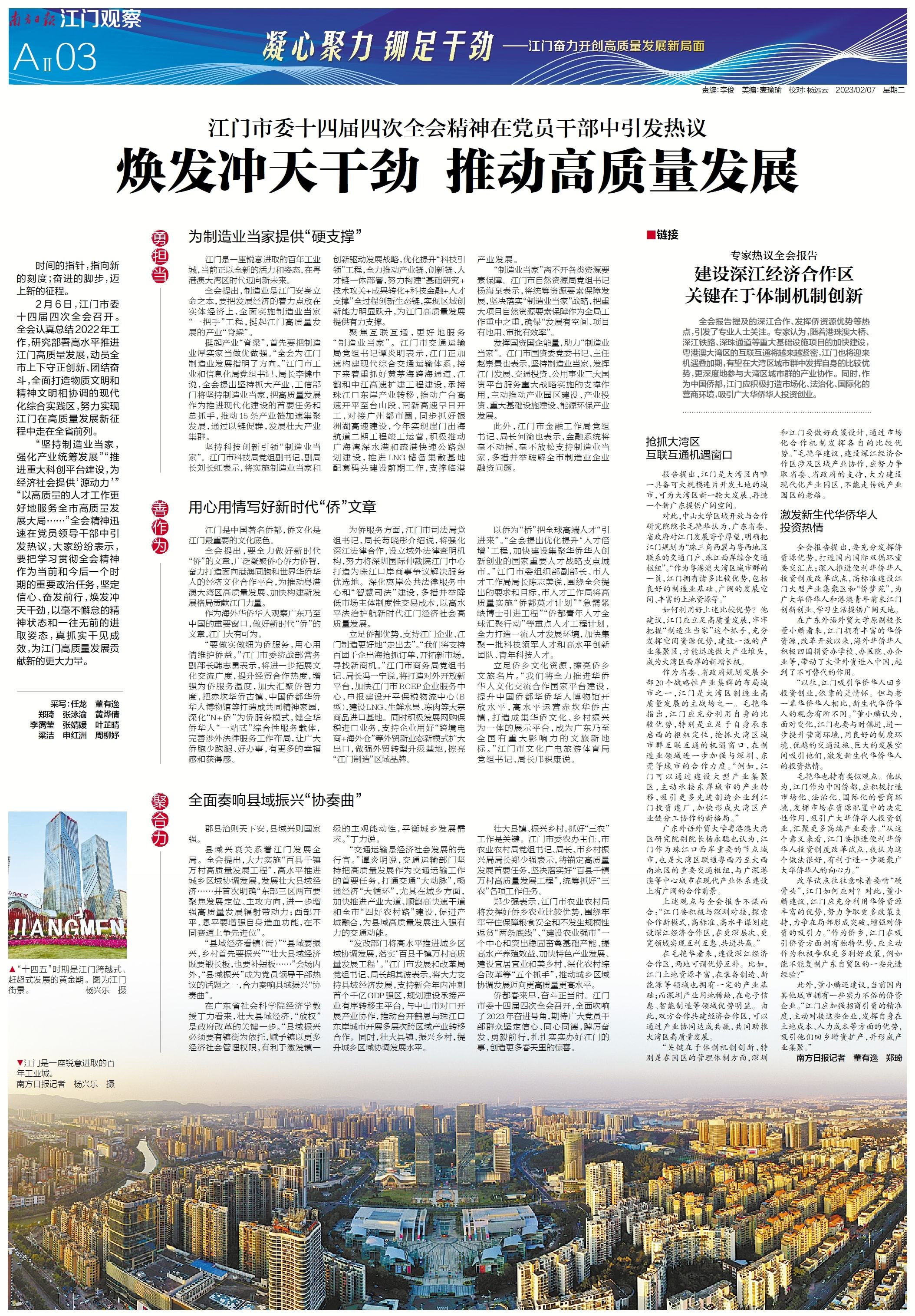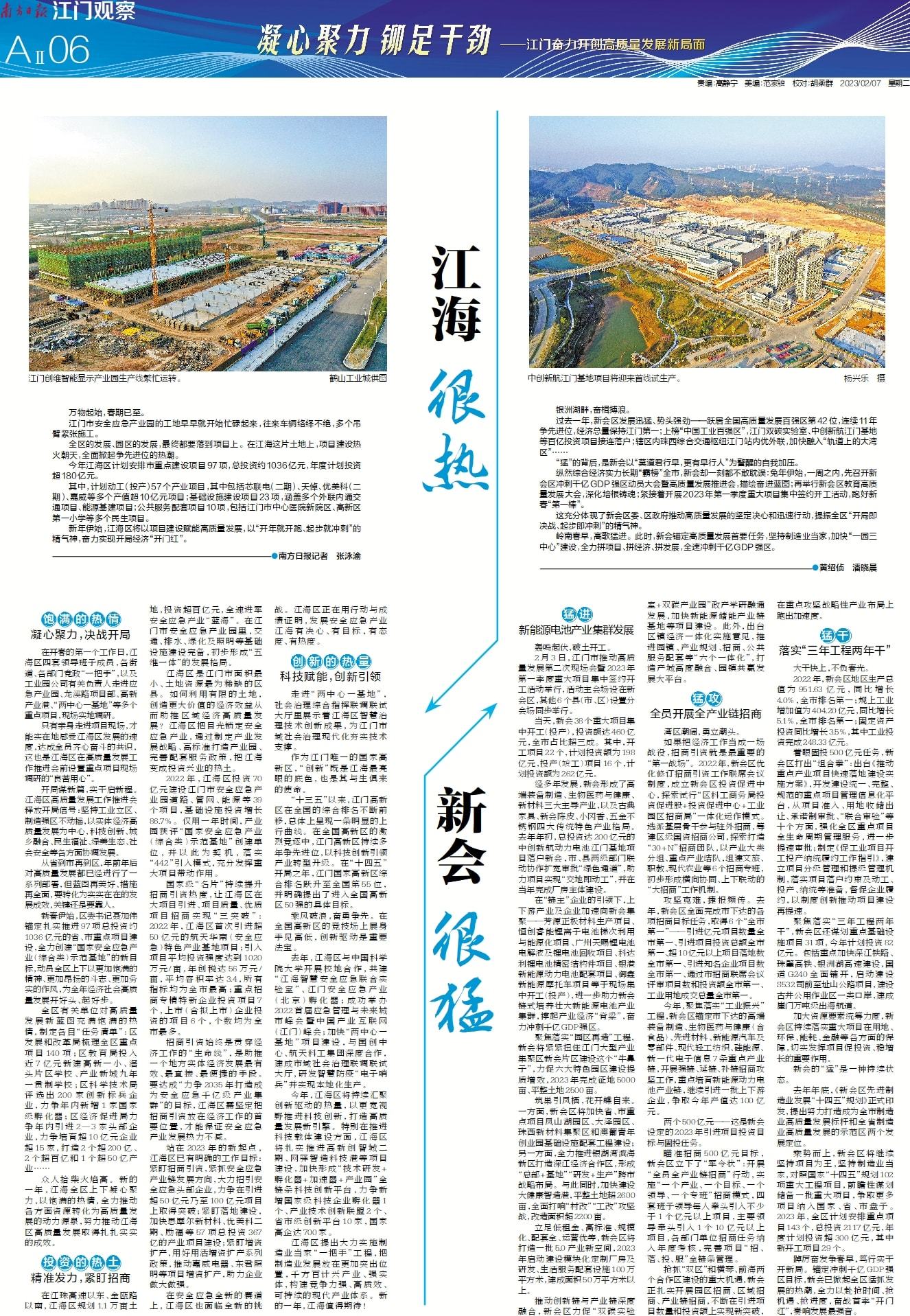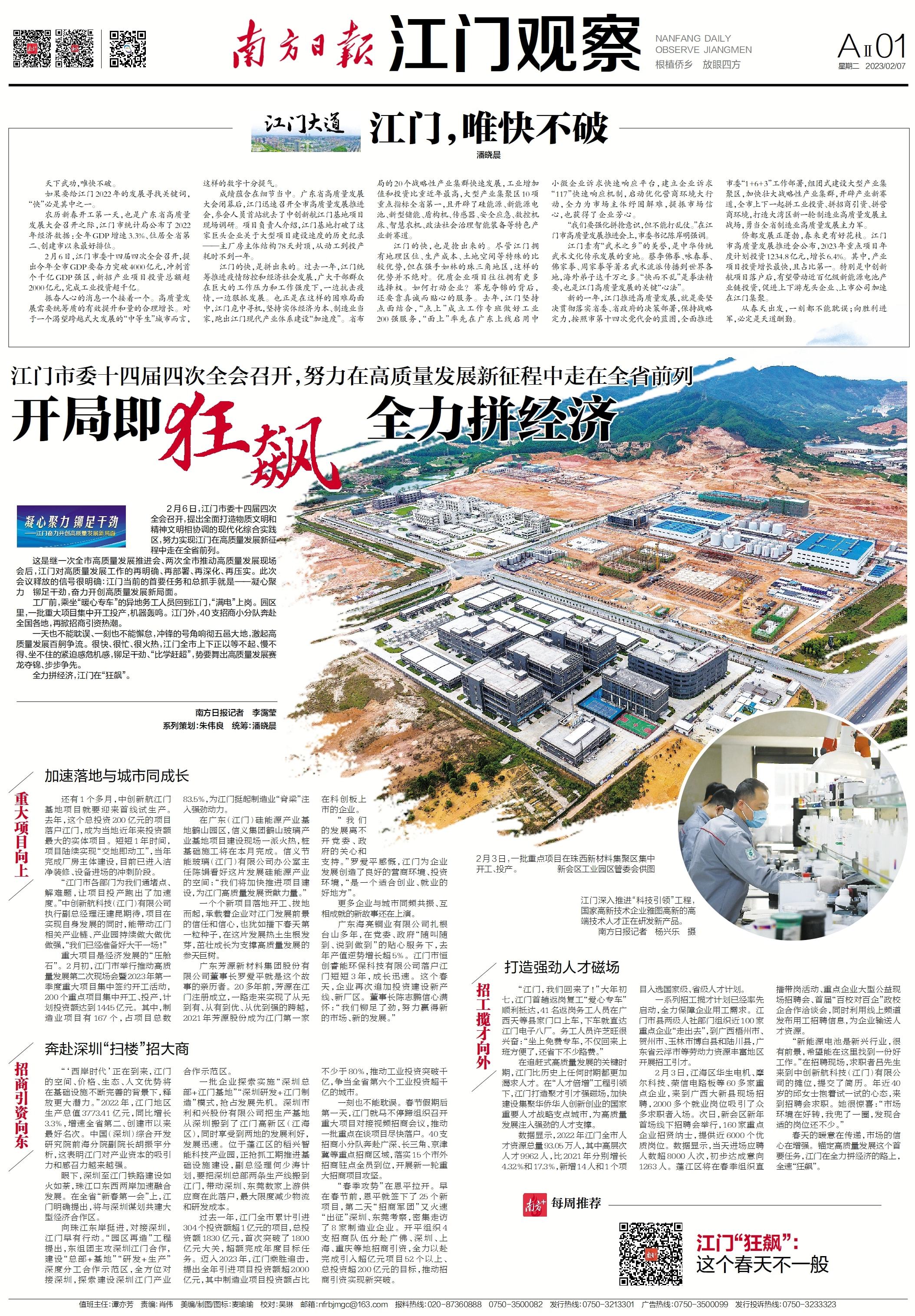 抢抓机遇促发展,片刻不等待、片刻不迟疑、片刻不懈怠、奋进正当时。本期(2023年2月7日)《南方日报·江门观察》推出8个版特别报道向外界展示新春开局,“狂飙”的江门。