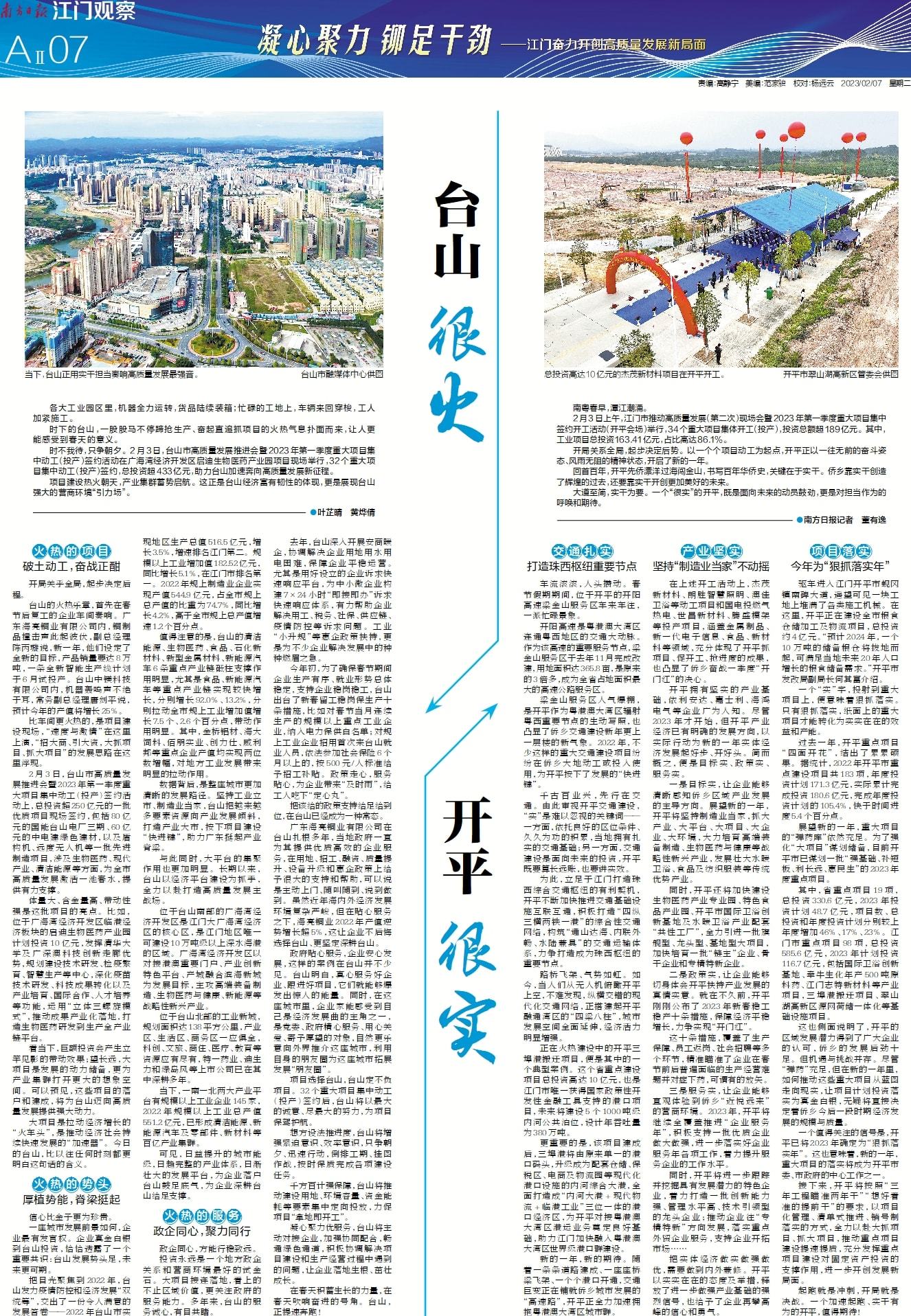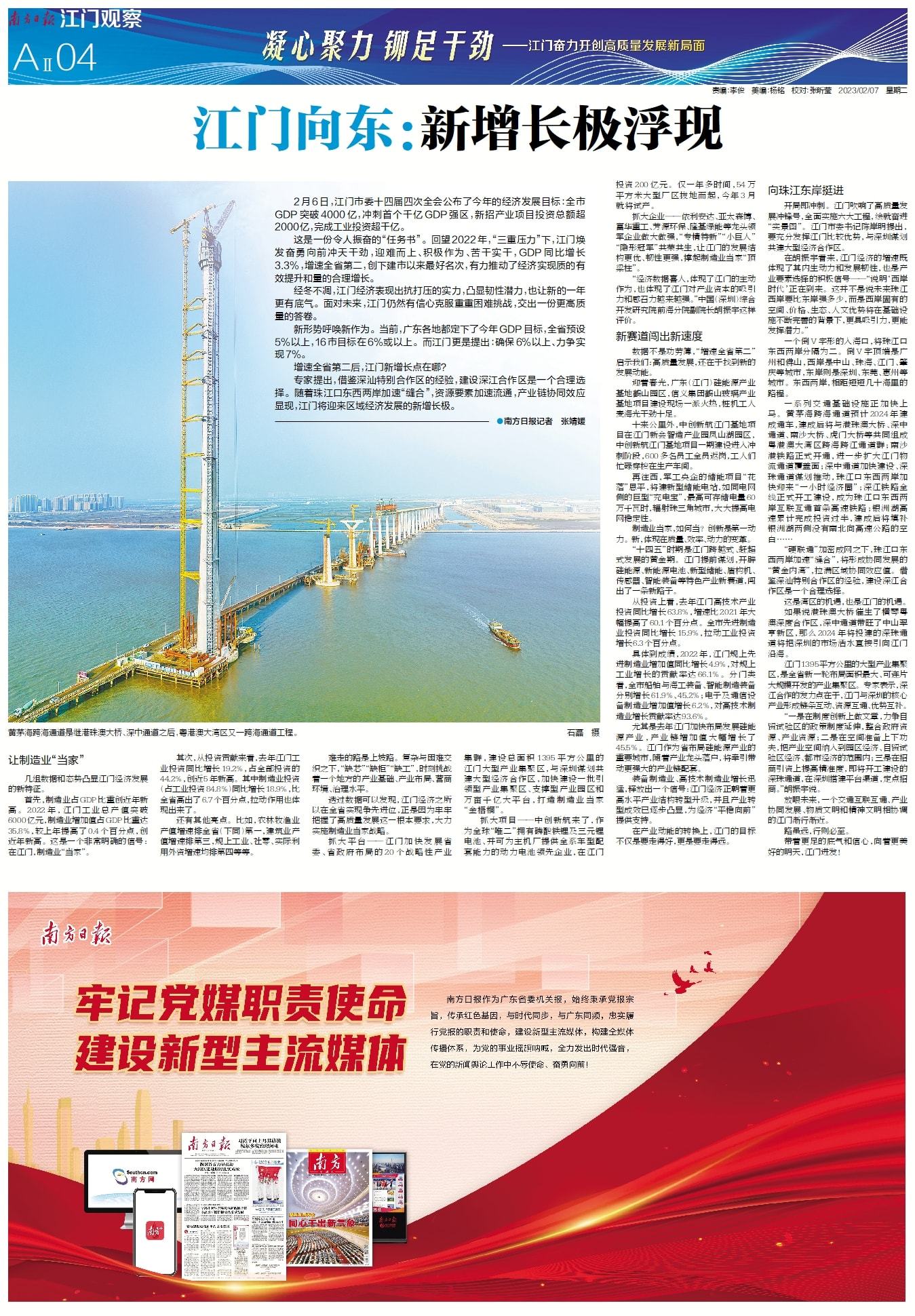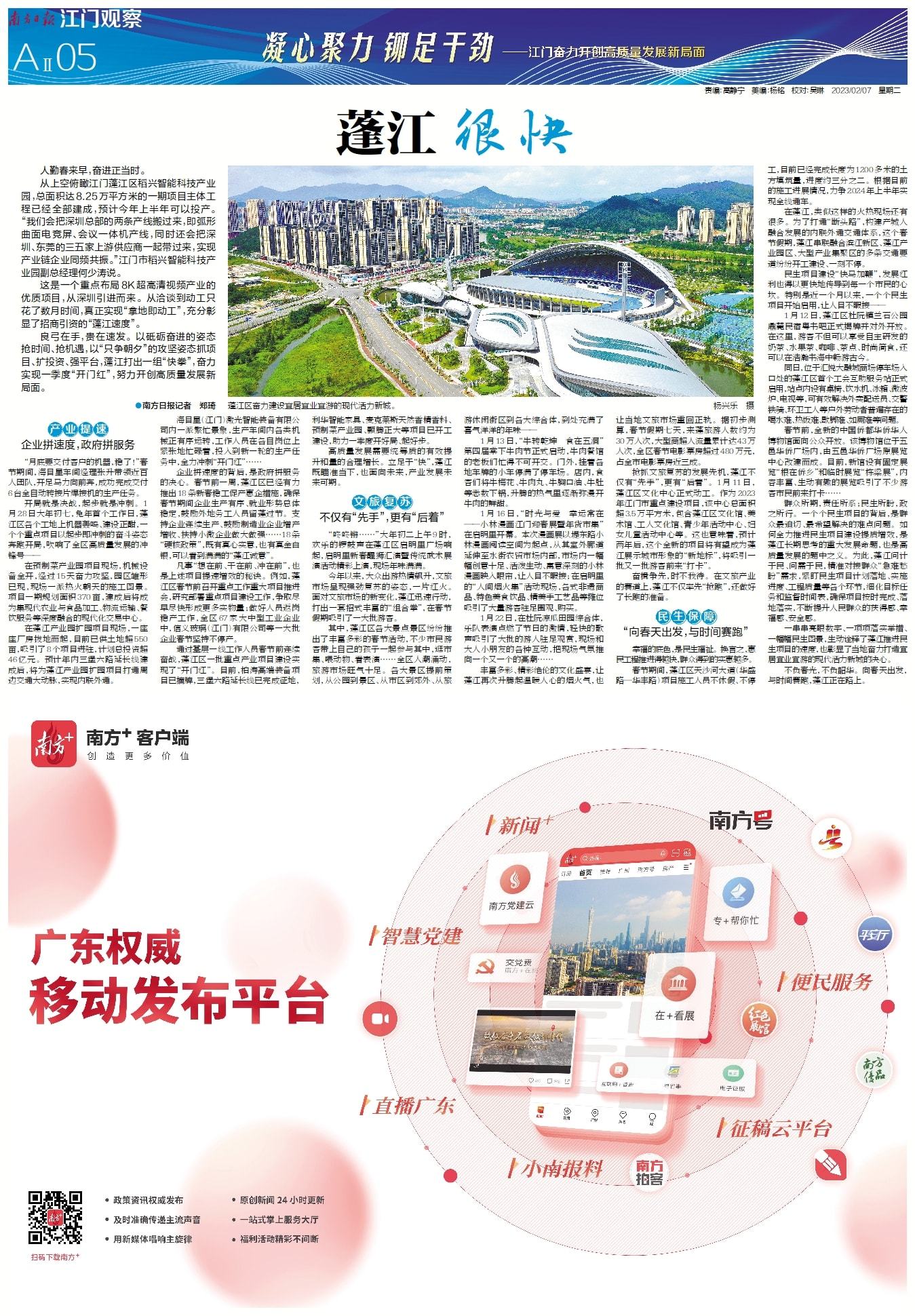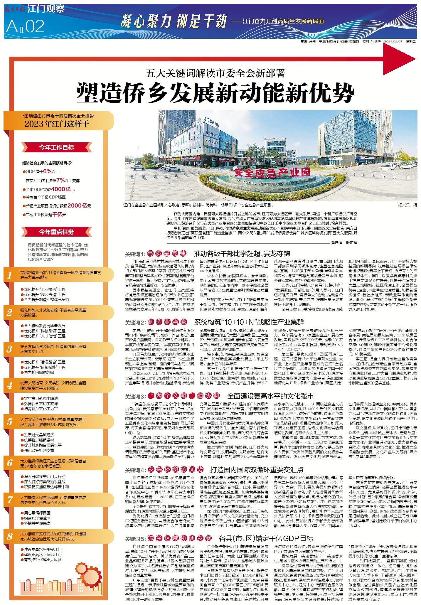 抢抓机遇促发展,片刻不等待、片刻不迟疑、片刻不懈怠、奋进正当时。本期(2023年2月7日)《南方日报·江门观察》推出8个版特别报道向外界展示新春开局,“狂飙”的江门。
