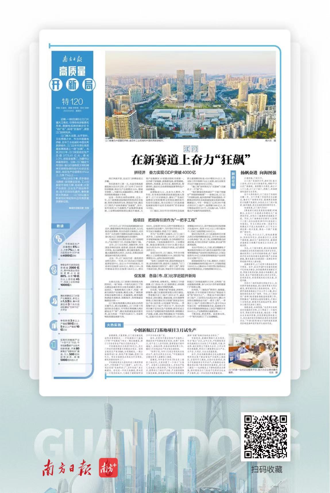 我们深入践行“四力”,奔赴山巅深壑、工地车间、田间地头,记录、传播全省人民拼搏高质量发展的热烈氛围、升腾景象,并结集成特别报道,奉献给读者。以下部分为《高质量 开新局—来自江门的一线报告》聚焦江门大地锚定高质量发展,奋力开好局起好步的生动实践和具体行动。