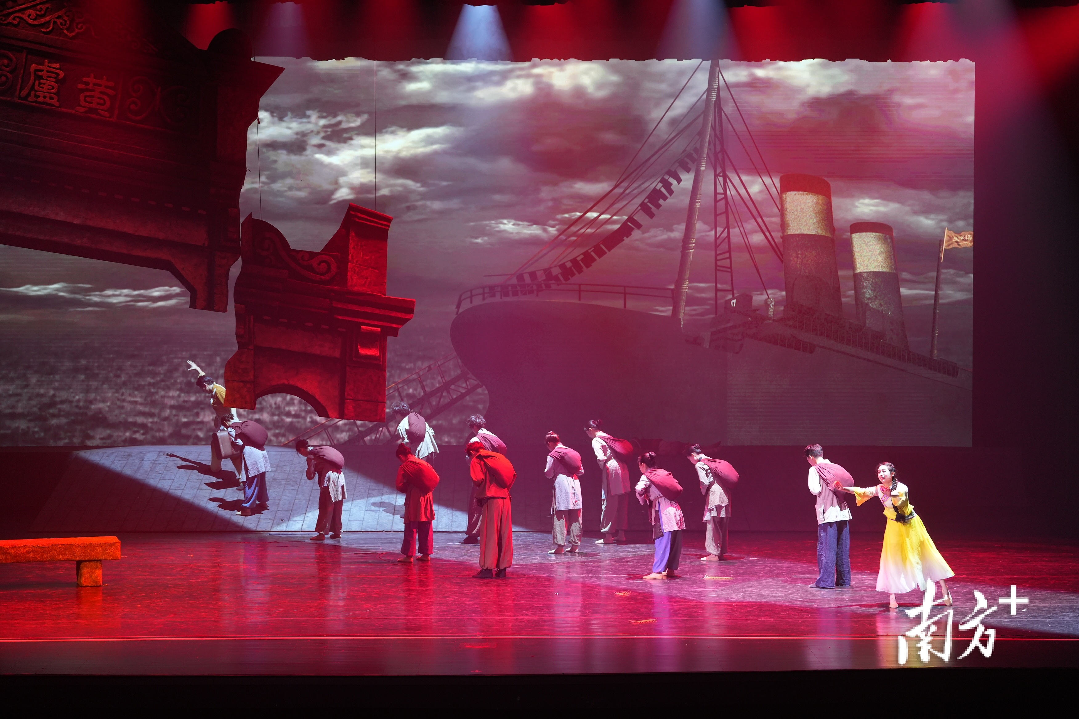 音乐是舞剧的灵魂。“随着剧情优化,该剧的配乐在情节、速度、情绪和力度上也进行了调整。”江门职业技术学院人文教育学院副院长陈娅担任音乐总监,她介绍,公演版融入了更多江门民间小调,运用了竹笛、高胡等大量民族乐器,凸显侨乡特色。在华侨为国捐躯场景,剧作还加入了轰炸枪炮声效,通过音乐层层转调,将剧情冲突推向高潮。