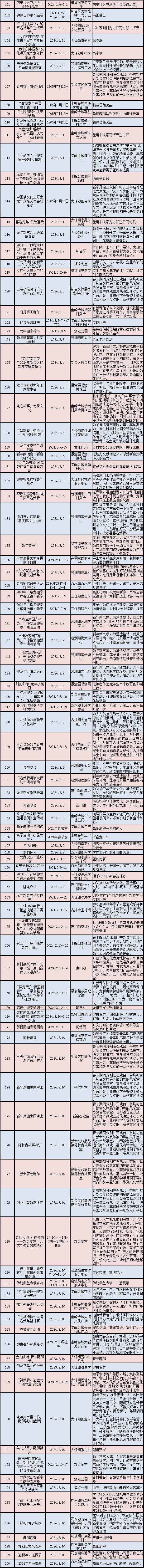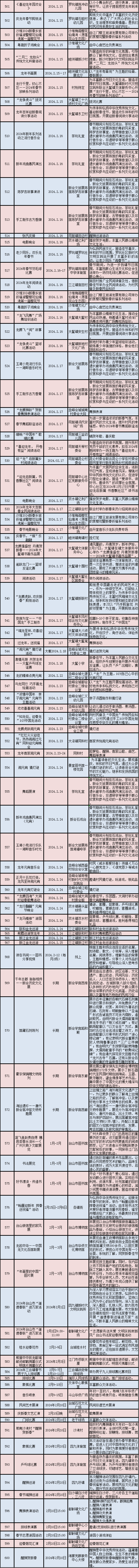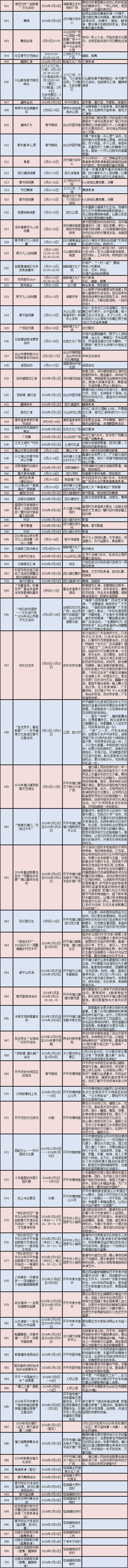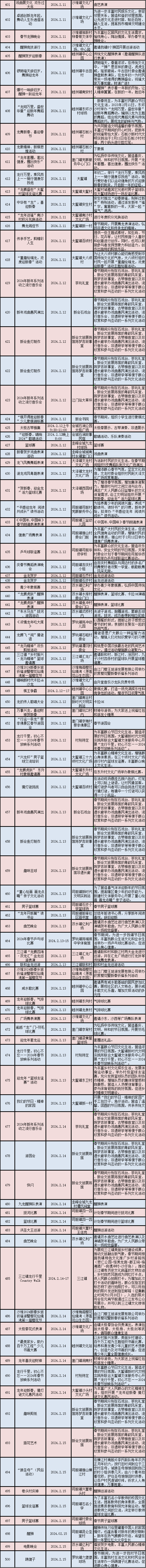 2024年春节期间文旅体活动情况表