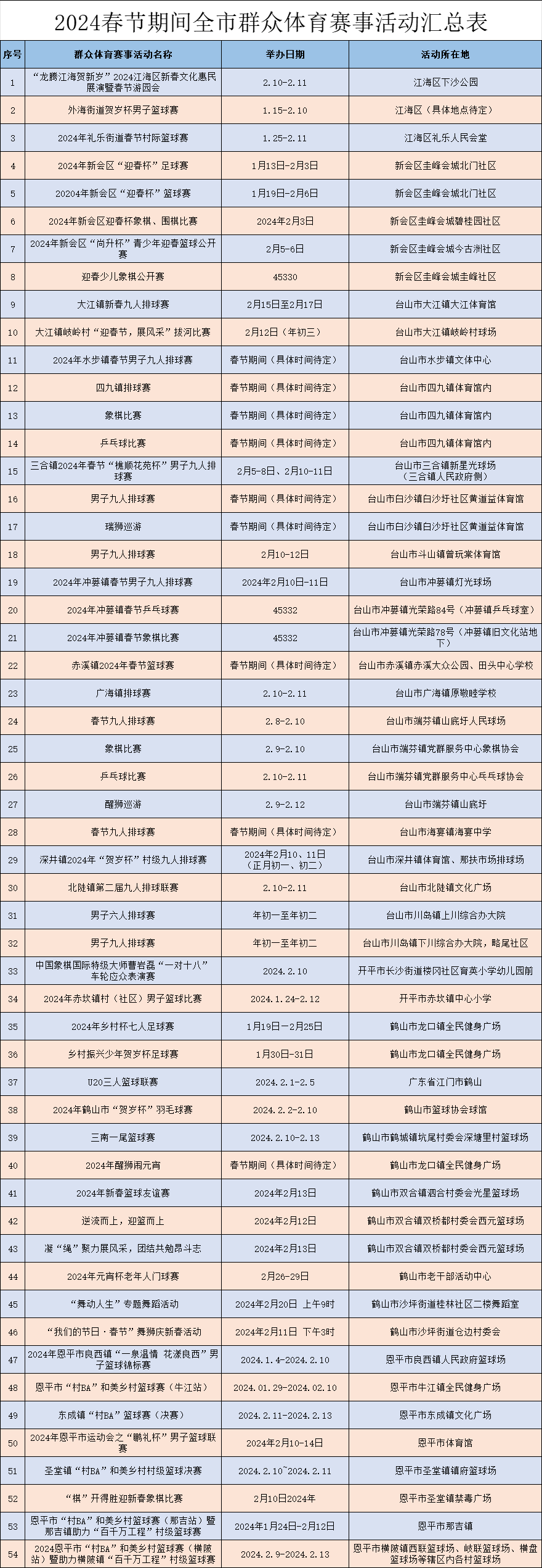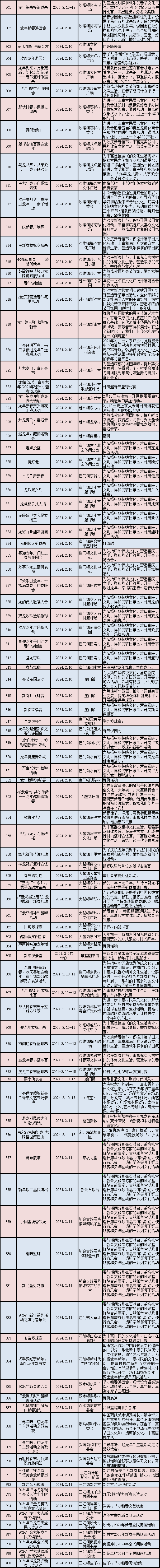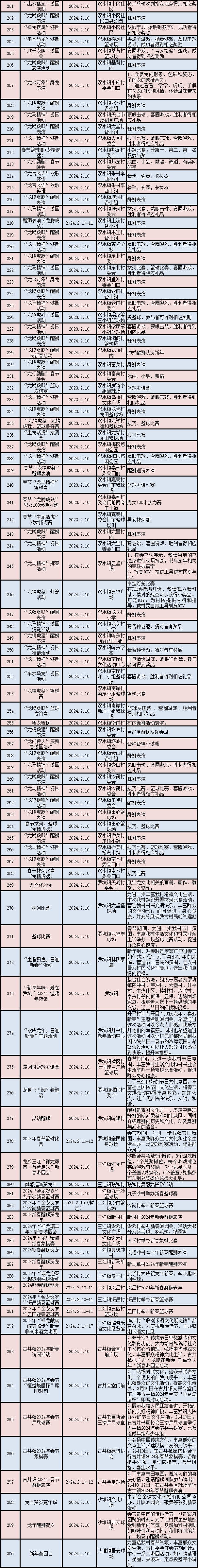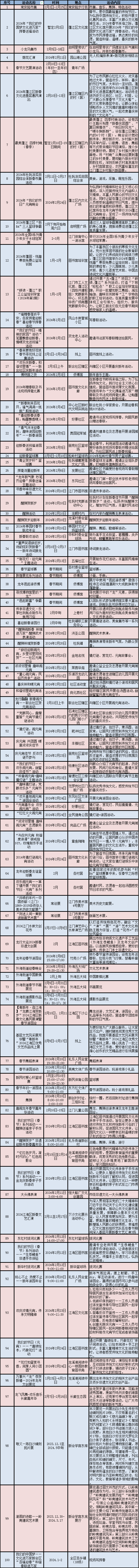 2024年春节期间文旅体活动情况表