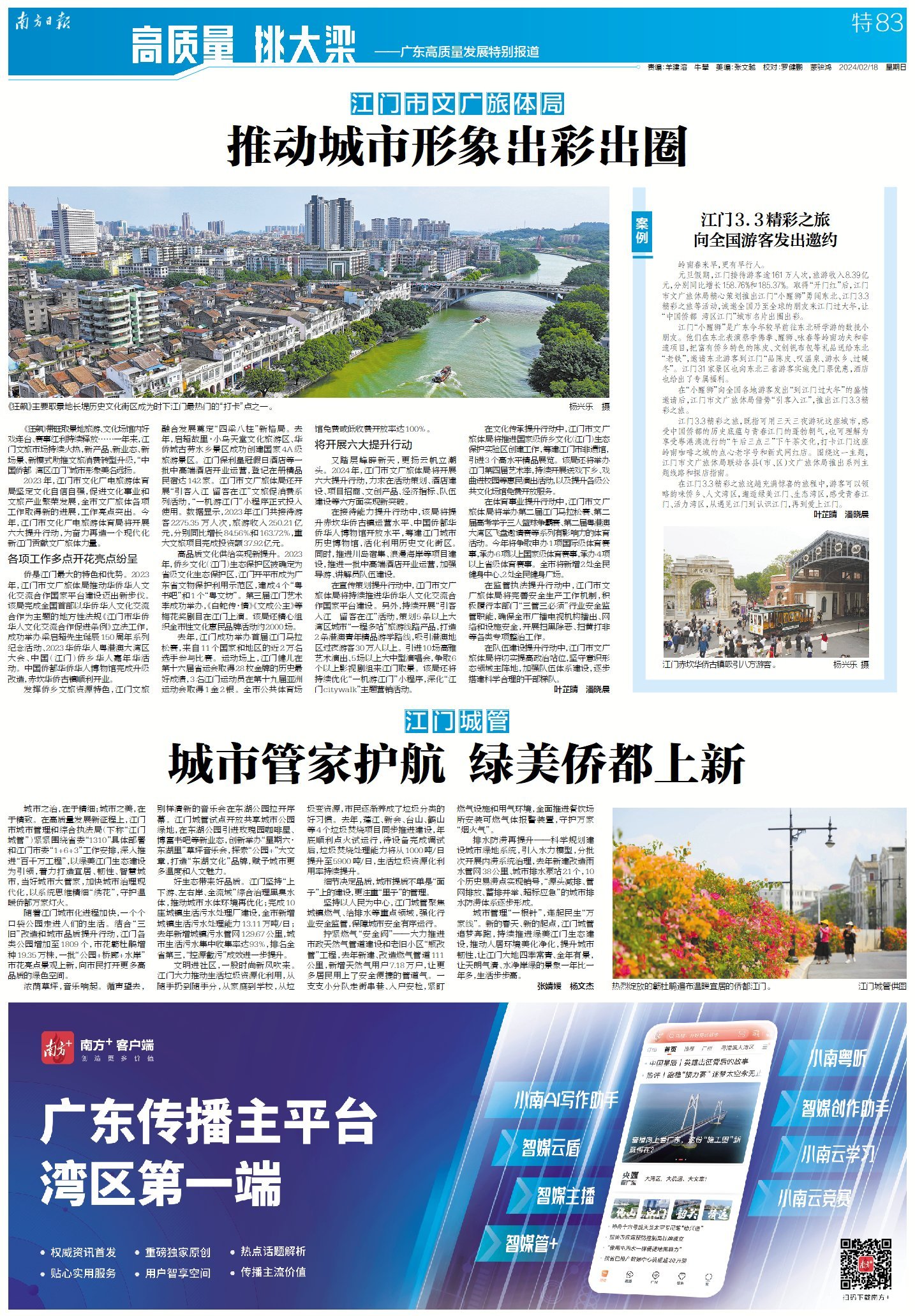 《狂飙》带旺取景地旅游、文化场馆内好戏连台、赛事红利持续释放……一年来,江门文旅市场持续火热,新产品、新业态、新场景、新模式助推文旅消费转型升级,“中国侨都湾区江门”城市形象美名远扬。