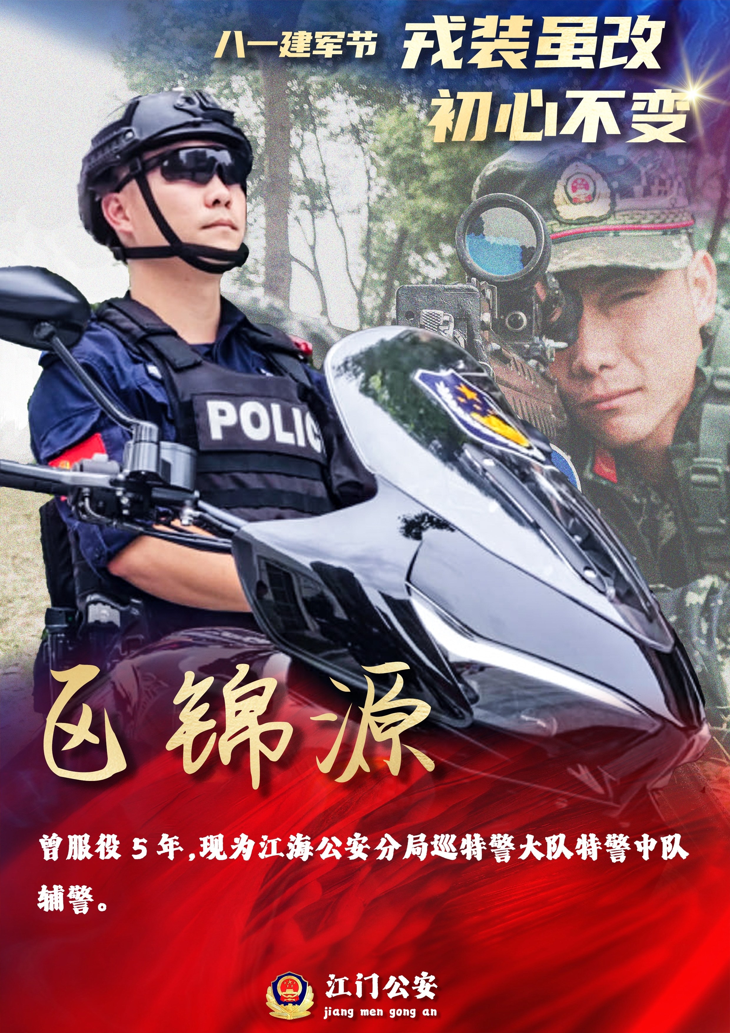 区锦源,男,中共党员,是江海公安分局巡特警大队特警中队辅警,曾在中国人民武装警察部队湖北总队服役5年,在部队期间,他展现出了坚韧不拔的意志和忠诚无畏的精神。他经历过严格的军事训练,培养了出色的纪律性和执行力。