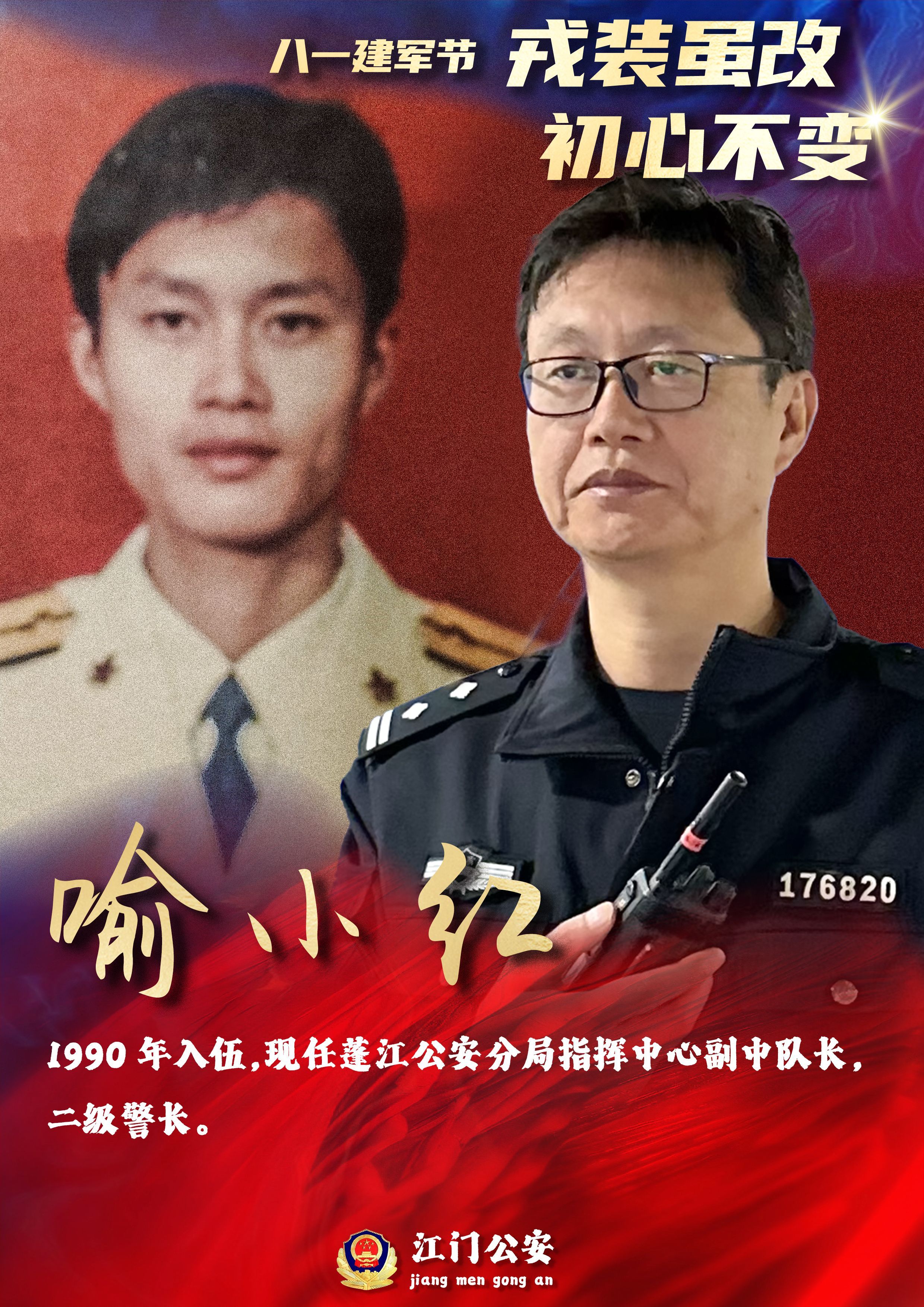 喻小红,中共党员,曾在中国人民解放军服役,现任蓬江公安分局指挥中心副中队长。