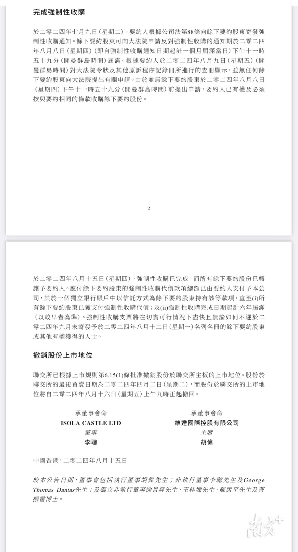 近日,维达国际有限公司(以下简称“维达国际”)发布公告,宣布私有化交易完成,于8月16日9时起正式从香港联交所退市。