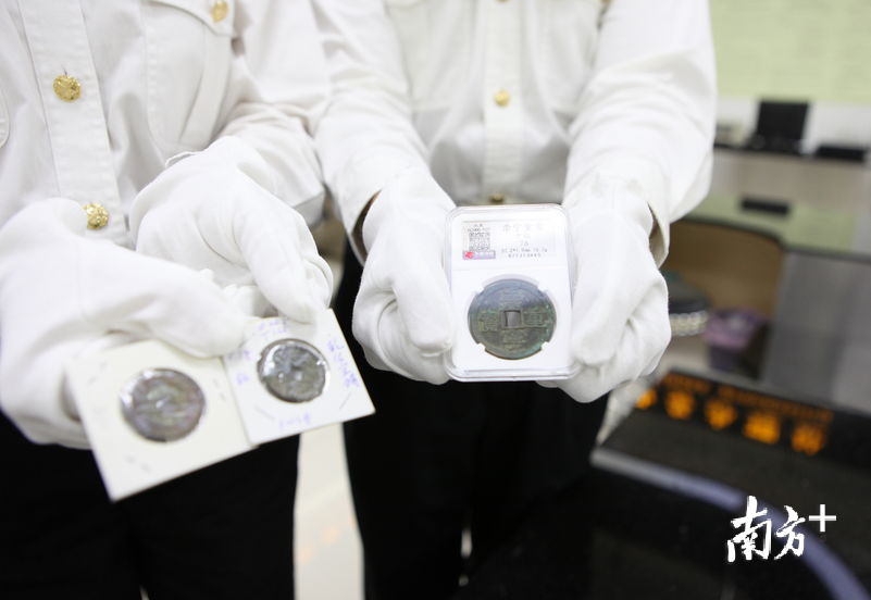 近日,中山港旅检现场从一名中国台湾籍旅客携带的棕色手提袋内查获数枚古钱币。4月24日,经广东省文物鉴定站专家鉴定,查获的古钱币中有2枚为宋代“崇宁重宝”钱币,属于国家禁止出境的一般文物。目前该案件已移交缉私部门处理。