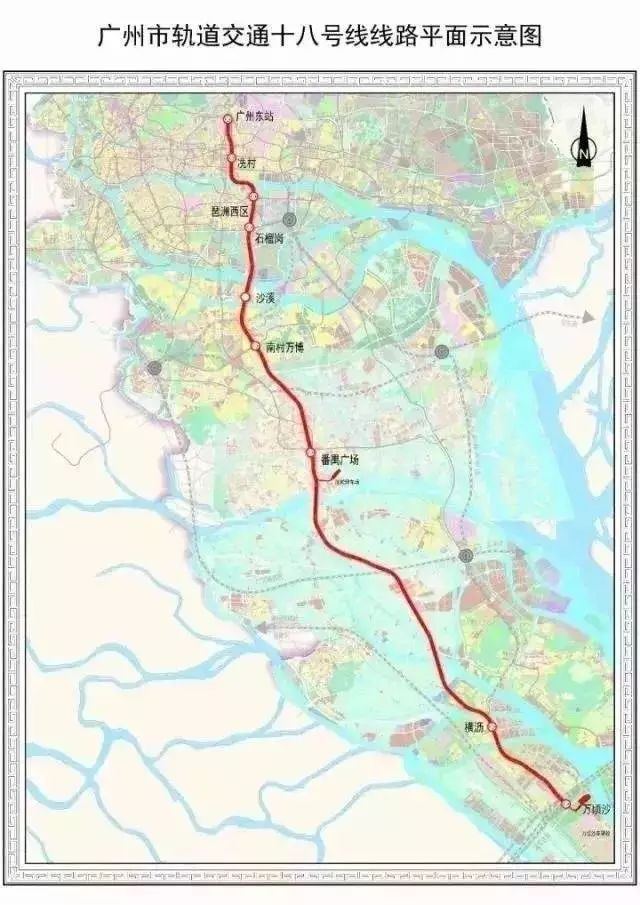 规划显示,18号线全线共设广州东站、冼村、琶洲西区、石榴岗、沙溪、南村万博、番禺广场、横沥、万顷沙等9座车站,其中冼村站已全面动工。