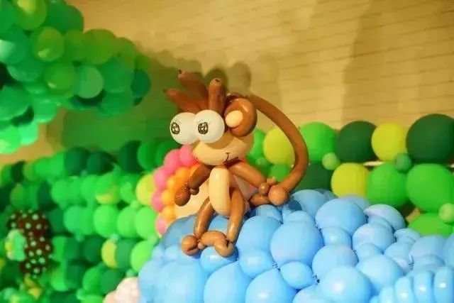 现场还设有卡通造型气球背景墙,可爱的角色人偶