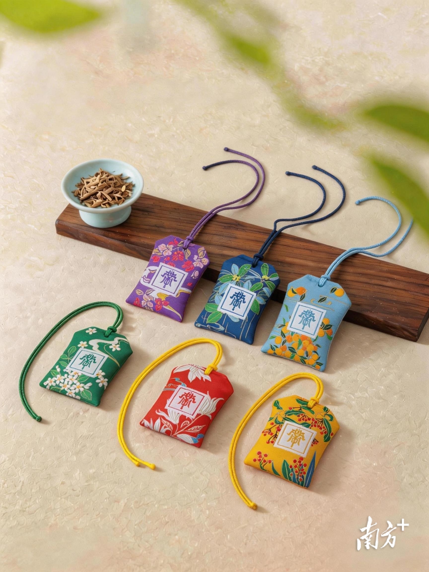南头镇青年将传统慈善灯酒会花灯的花纹实现现代化设计后,做成香囊。 受访者 供图