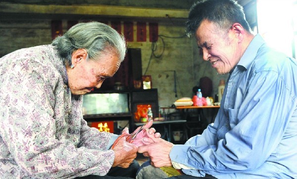 麦容欢,中山东凤人,今年100岁高龄。这个生于1918年的母亲,在历经战乱、丧夫和丧女之痛后,依然对两个先天智障的儿子不离不弃,照顾他们大个世纪。2016年5月,瘦弱的大儿子阿满因病离世。她与小儿子阿富相依为命两年后,如今也要说再见了。