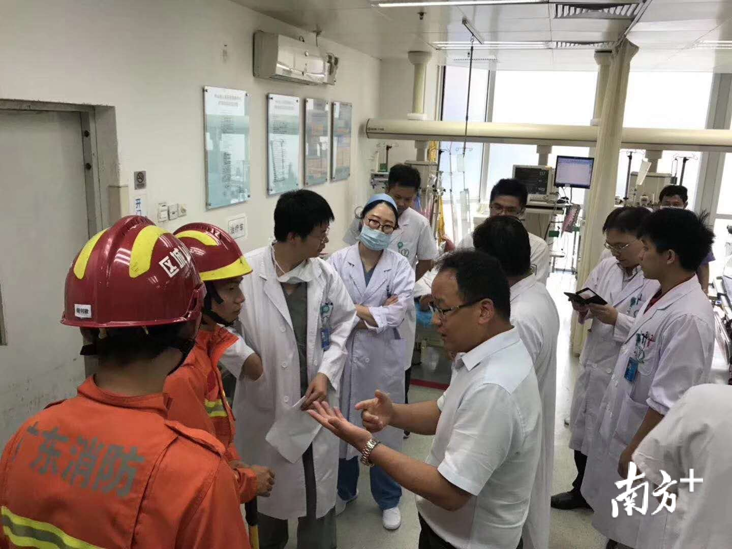 当天,患者伍某先被送到了距工地最近的东凤医院,后又转至小榄人民医院,最终因伤势严重于午时12:40分被送至市人民医院救治。“当时,患者虽然清醒,但随时可能有生命危险,急诊科开启了严重创伤绿色通道来救治他,我们为他做了充分的术前准备。”急诊科主任医生赵双彪告诉记者。