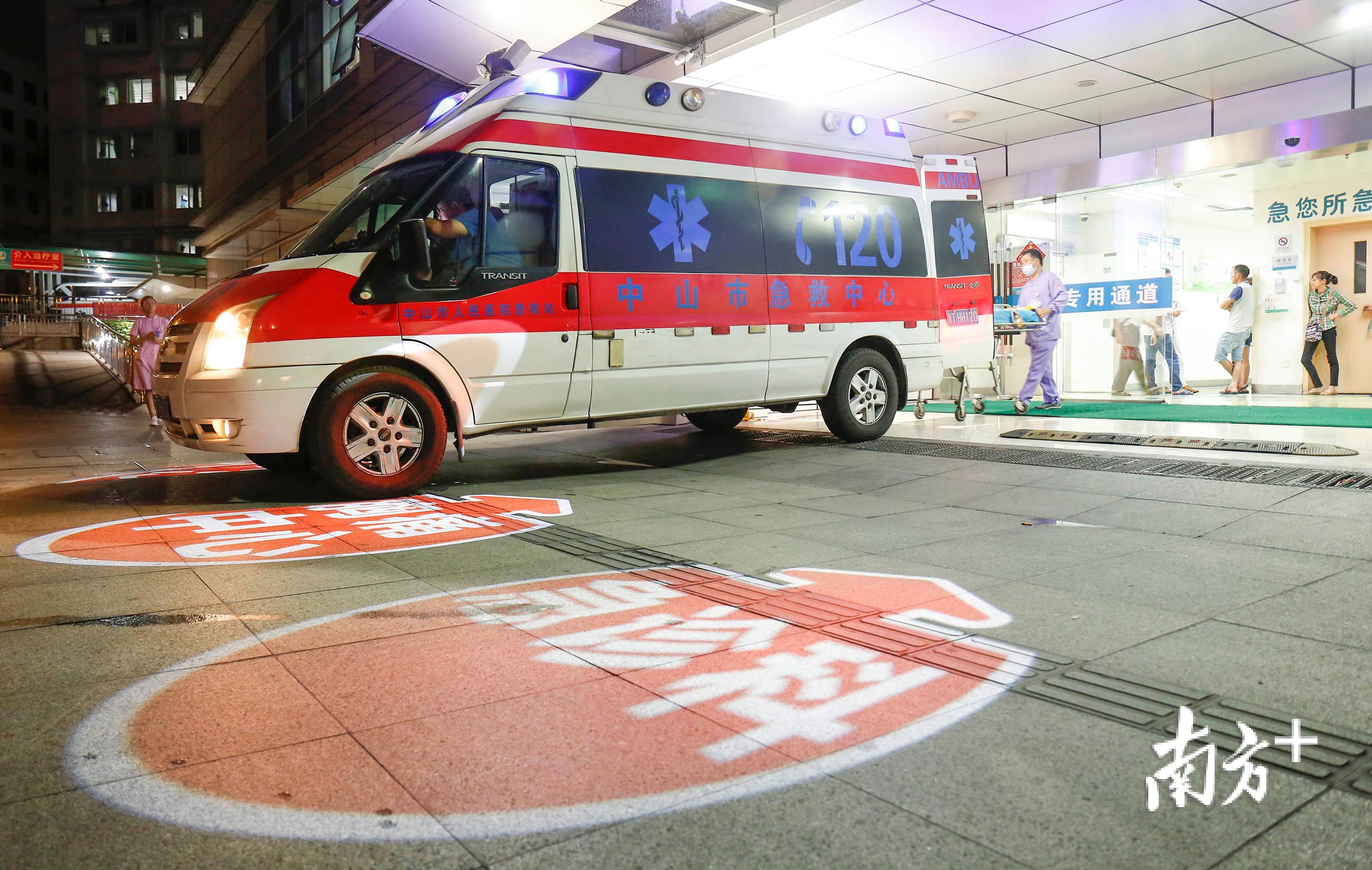 “嘀嘀,嘀嘀,嘀嘀……”警报声再次响彻整个抢救室,在中山市人民医院急诊中心(以下简称“急诊中心”)里,发出抢救警报的竟然是一台打印机!接着,就有120指挥中心的指令单被打印出来,急诊医生刘通看到后立刻对护士何晨弘说:“走,去板芙医院接人”。此时,120救护车已在楼外的专属位置上待命,不到2分钟,大家就出发了。