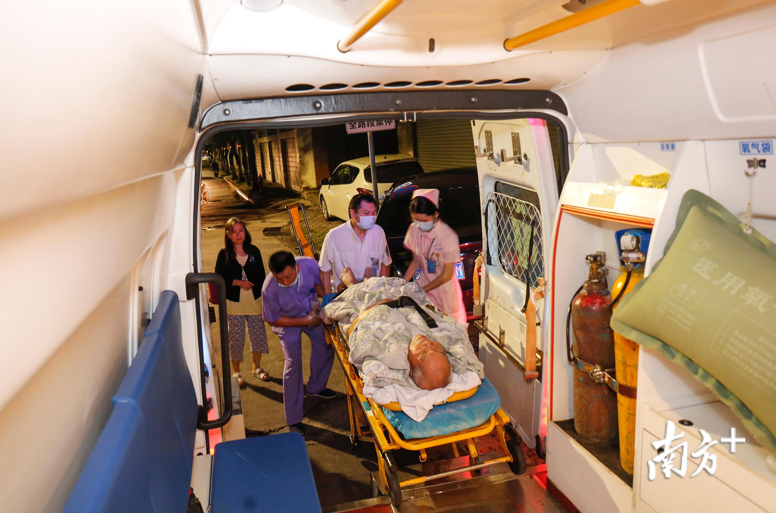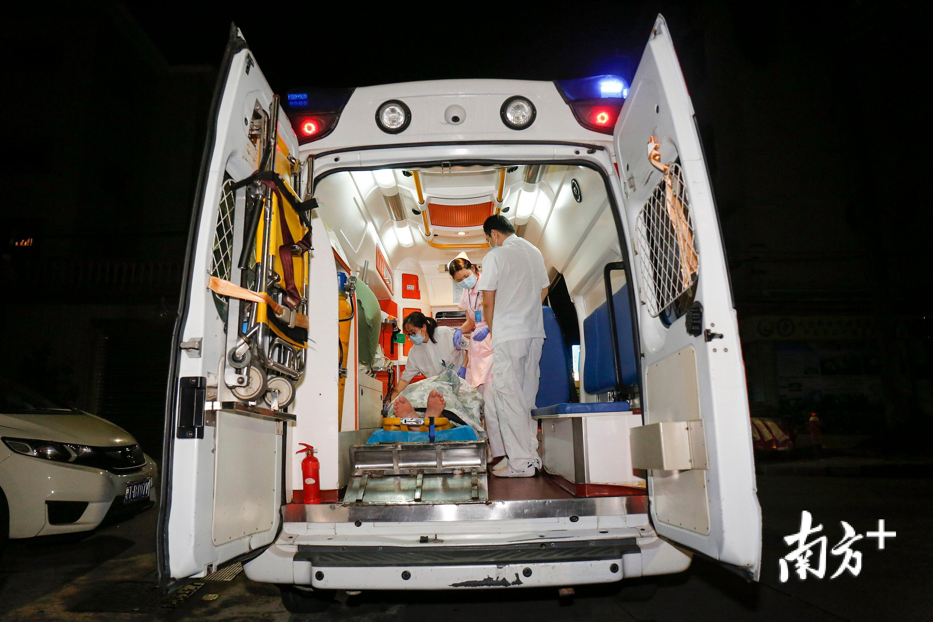 “这单要接的人对抢救时效要求很高,患者已脑梗塞,只有及时转院才有希望恢复肌力。”刘通在救护车上说。16:05从急诊中心出发至15公里外的板芙医院,120司机甘师傅开了18分钟。他已为急诊中心工作20多年,平时与急诊另外两个司机师傅倒班,白班是早八晚五,夜班则要连续工作15小时。