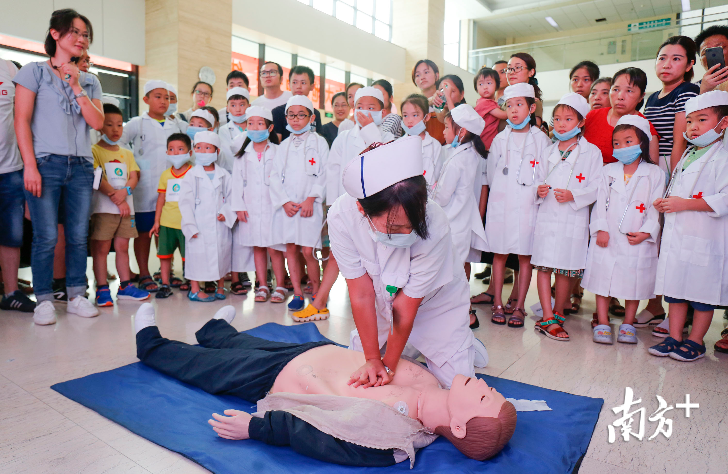 8月19日,是首个中国医师节,中山市火炬开发区医院迎来了20多个穿白大褂的小朋友,今天他们要作为“医生”在这里为大家服务,听起来真是犀利。原来,为欢度首个中国医师节,火炬开发区医院启动了“小小医生体验营”活动。