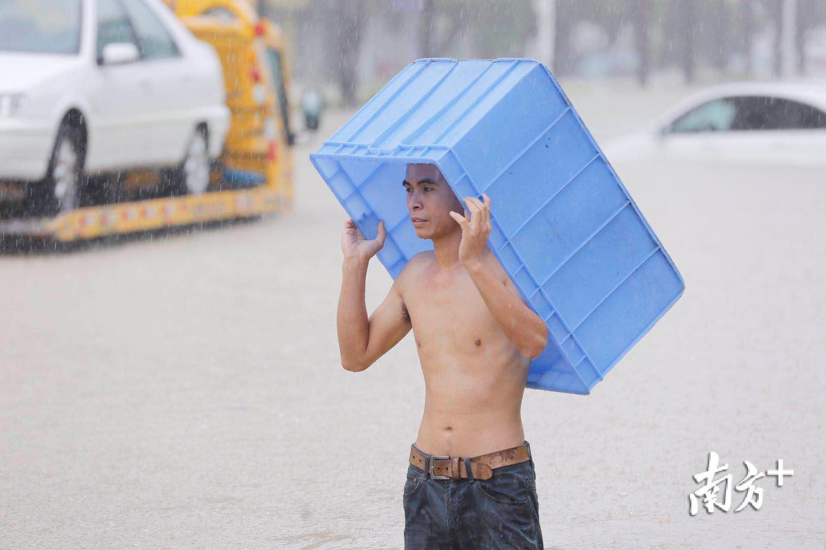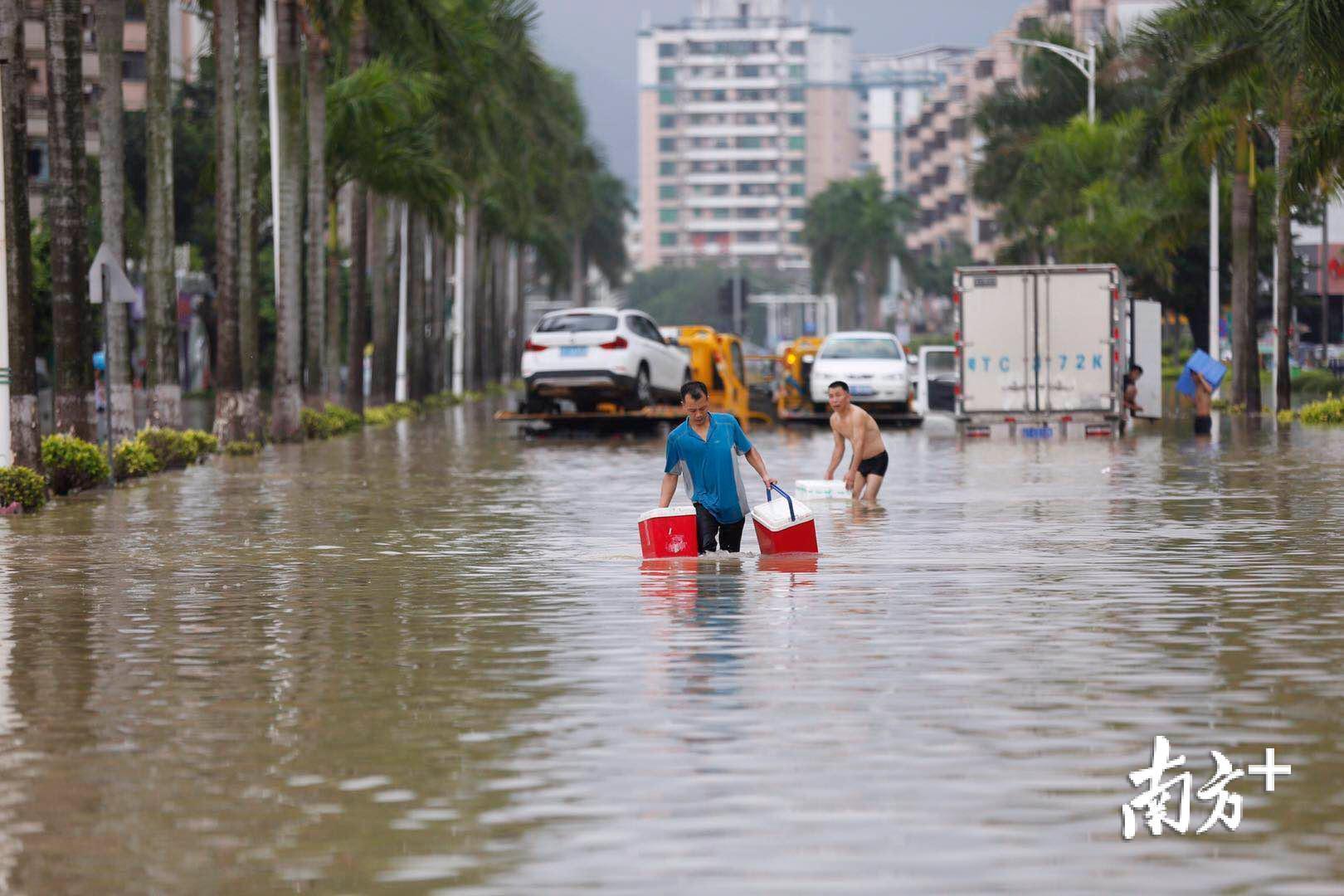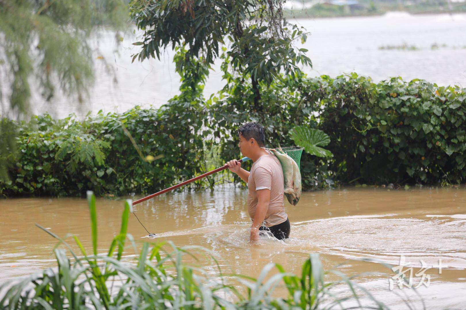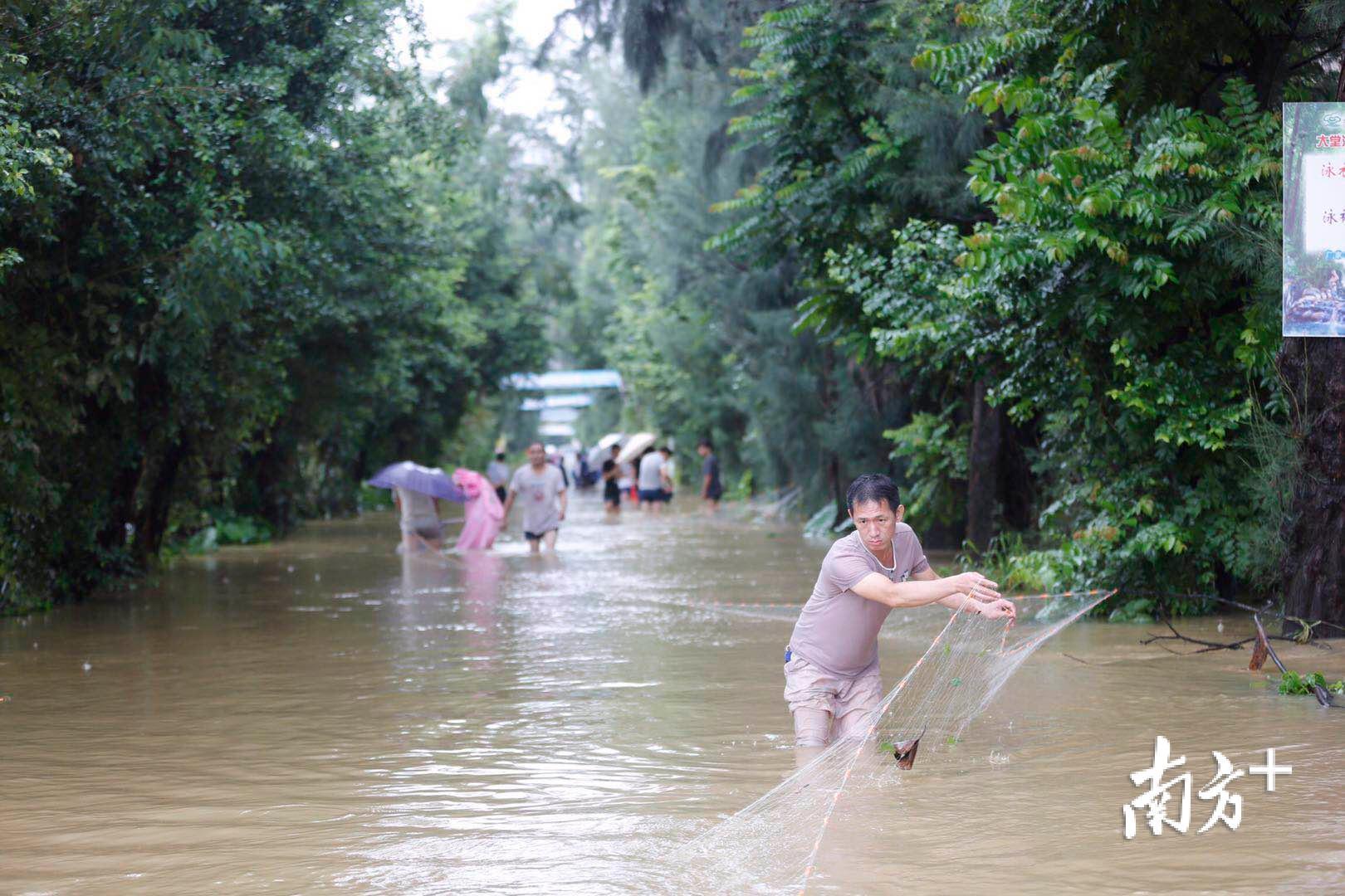 ▲一目video|航拍中山暴雨水浸严重,市民在路上捞到满满一筐鱼!