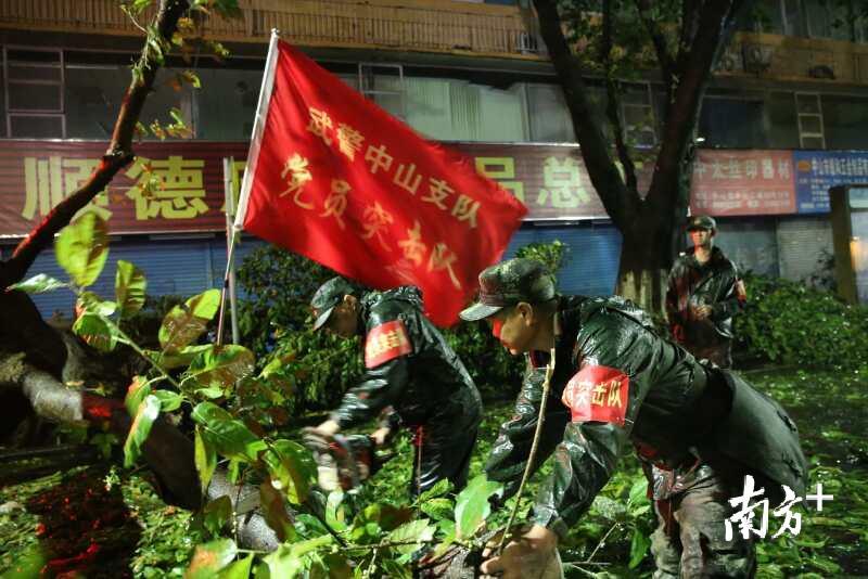 “山竹”未走,武警官兵通宵奋战,顶风冒雨清理路障。