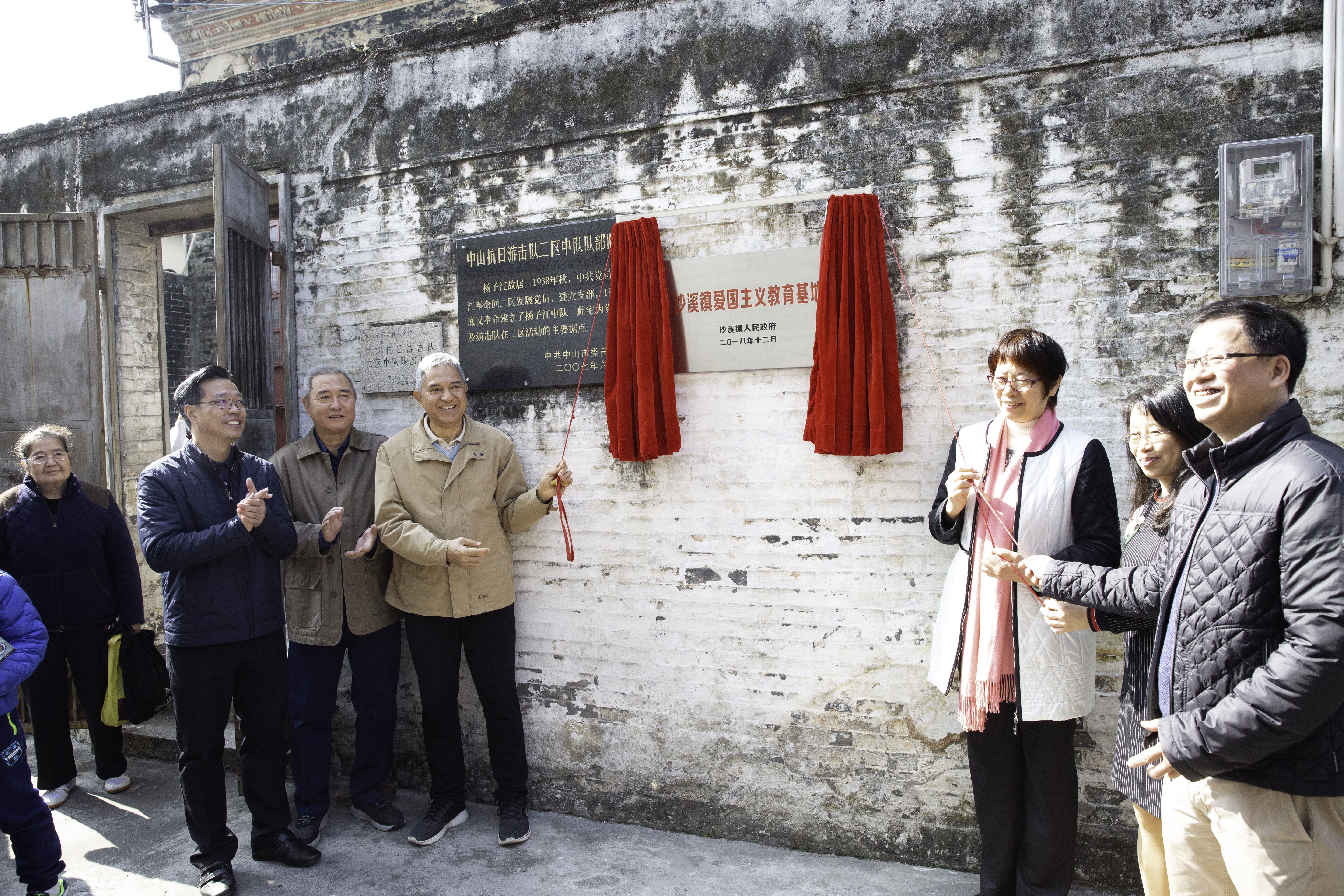 同日,在杨子江杨奇旧居,中山市老干部副局长罗秋兰、市档案局副局长高小兵、沙溪镇党委书记文卫戈等领导、嘉宾和杨子江杨奇家属代表共同为“沙溪镇爱国主义教育基地”揭牌。