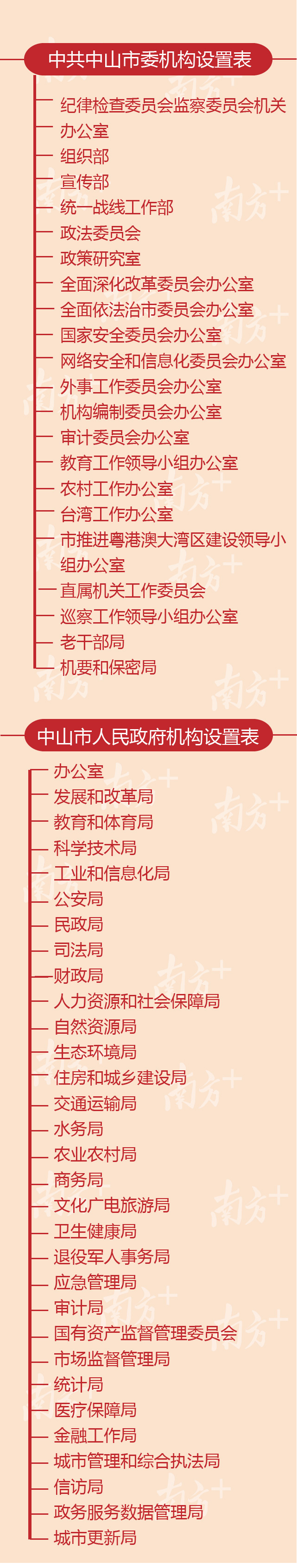 南方+记者获悉,改革后,中山共设置市级党政机构46个,其中市委机构15个,政府机构31个。