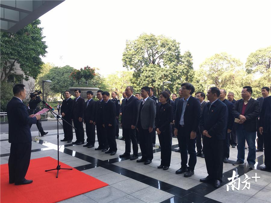 1月18日上午,重新组建的中山市司法局举行揭牌仪式。市委常委、市委政法委书记杨安队,副市长、市公安局局长郑泽晖出席揭牌仪式,市司法局副处级以上领导、各直属单位、各科室负责人共30余人参加揭牌仪式。