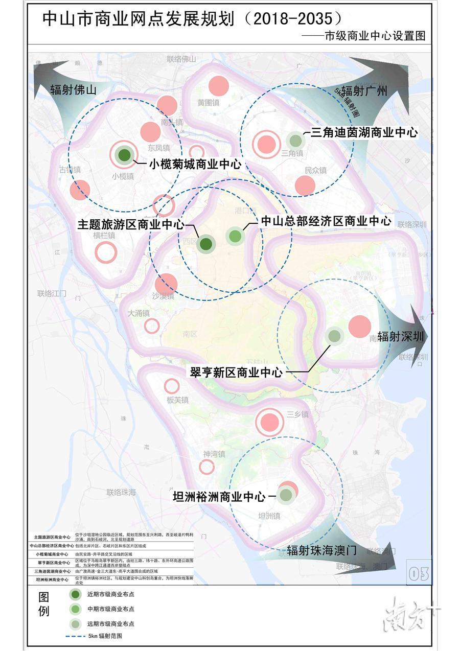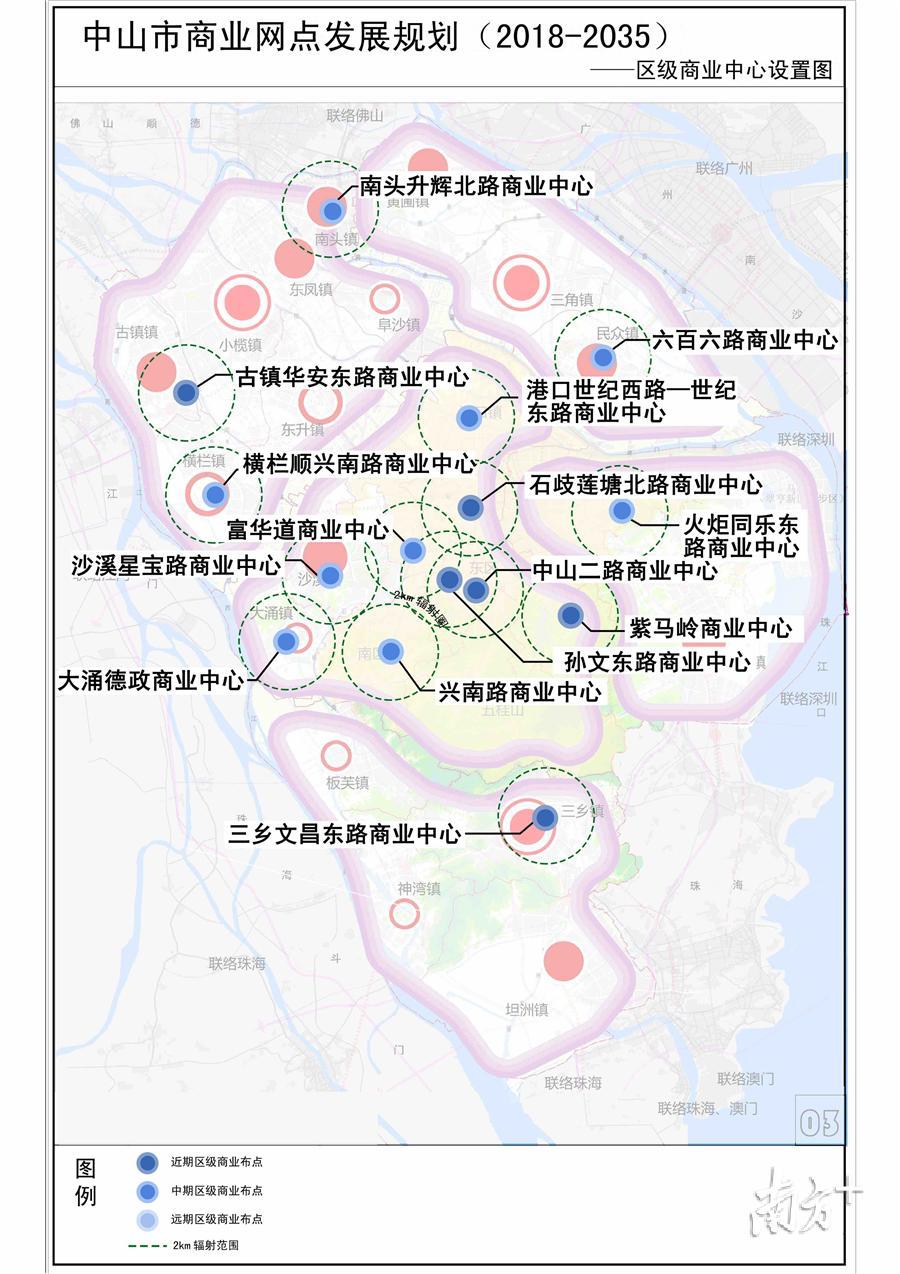 近日,《中山市商业发展规划(2019-2035年)》草案编制完成。为让公众充分了解草案内容,进一步征求公众意见,现正在中山市商务局官方网站上进行草案公示。公示时间为2月1日至2月26日止。未来,中山将形成6大市级商业中心,15个地区级商业中心,还将打造19条重点特色商业街区,全面提升城市商业品位,并在农贸市场、农产品批发市场、商业流通基础设施方面重点发展,全面辐射粤港澳大湾区。