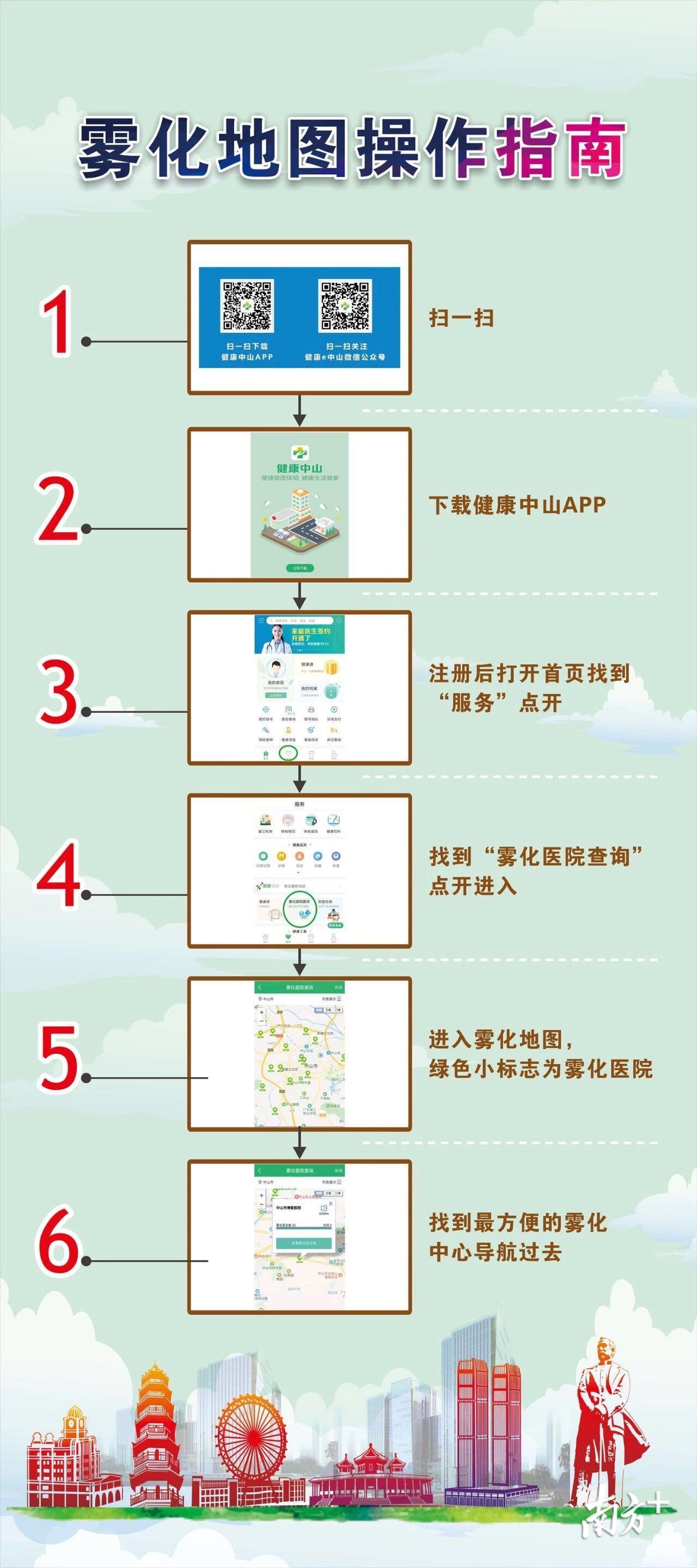 在雾化地图发布后,大家只需六步就能找到离家最近、最方便的智能雾化中心。如下图: