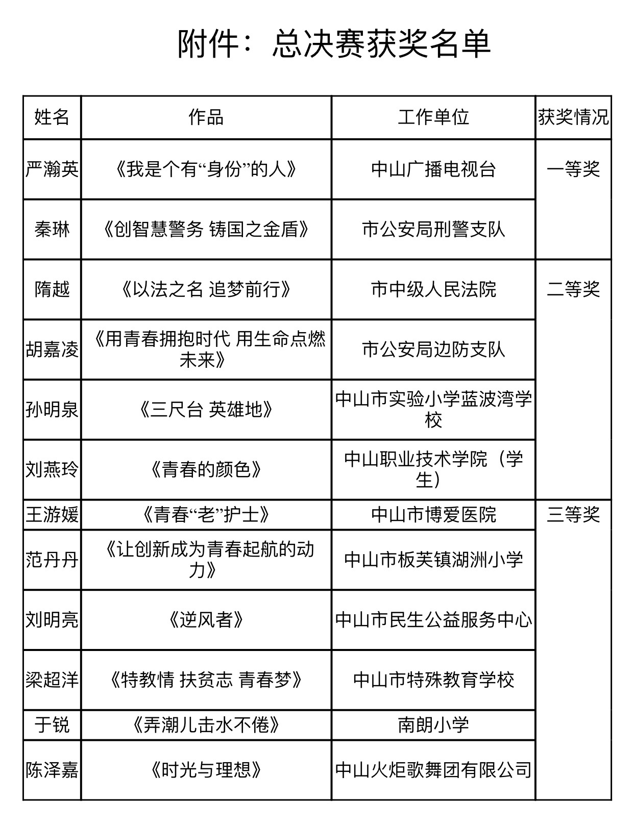 最终,来自中山广播电视台的严瀚英和市公安局刑警支队的秦琳夺得一等奖,隋越等4人获得二等奖,王游媛等6人获得三等奖,梁超洋获得最佳人气奖。