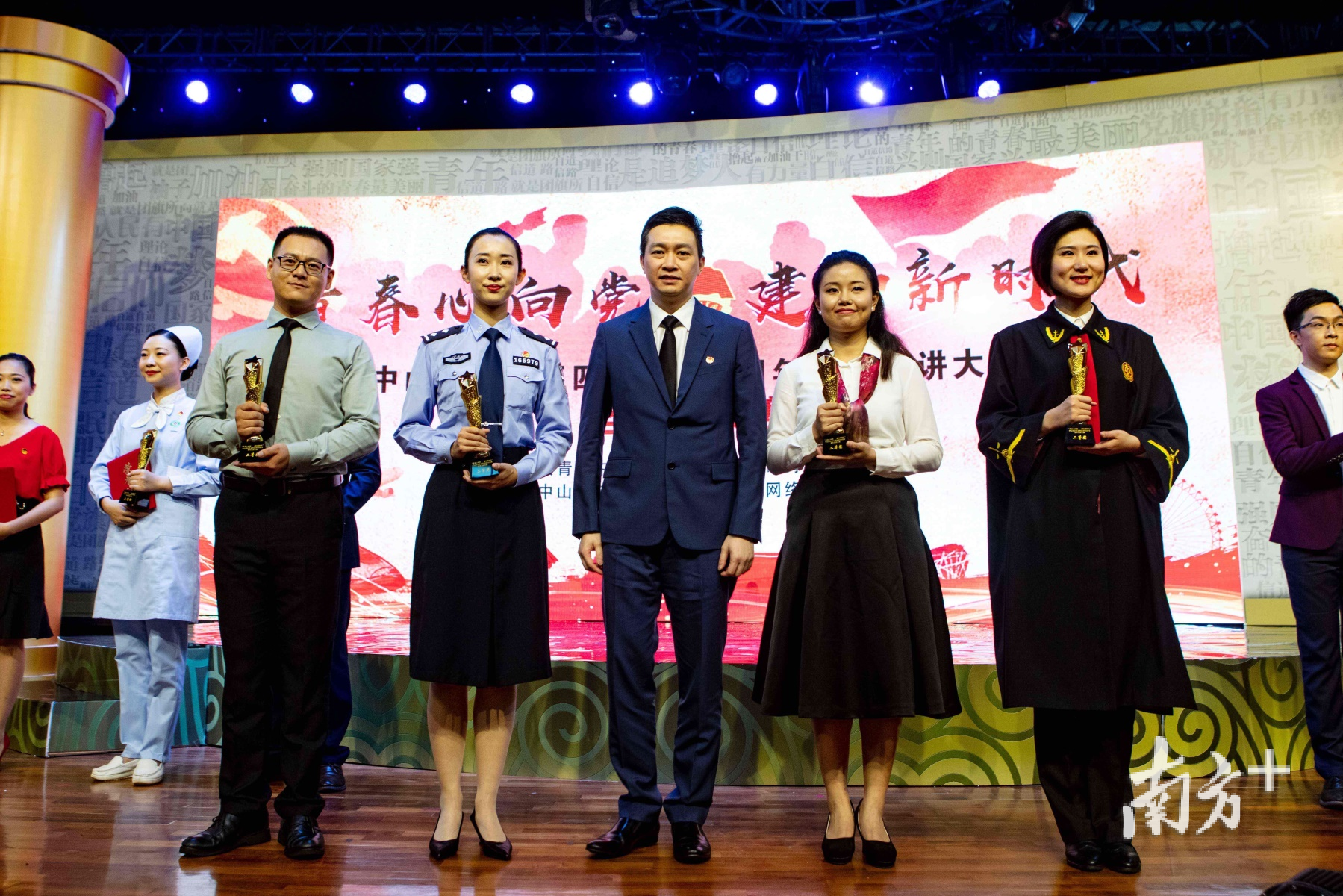 舞台上,选手们落落大方、声情并茂,上溯百年前的五四历史,讲述身边青年的奋斗故事,表达了新时代下中山青年承担起历史使命和时代责任的信念和决心。有的讲述了自己投身扶贫一线的经历,有的回忆了教师生涯中的动人点滴;有的分享了身边入伍同学艰苦而闪耀的故事;有的则吐露了身为台前主持人的幕后心声。他们凭借着生动的语言、鲜活的事例和饱满的热情,打动了评委,也赢得了现场观众的阵阵掌声。