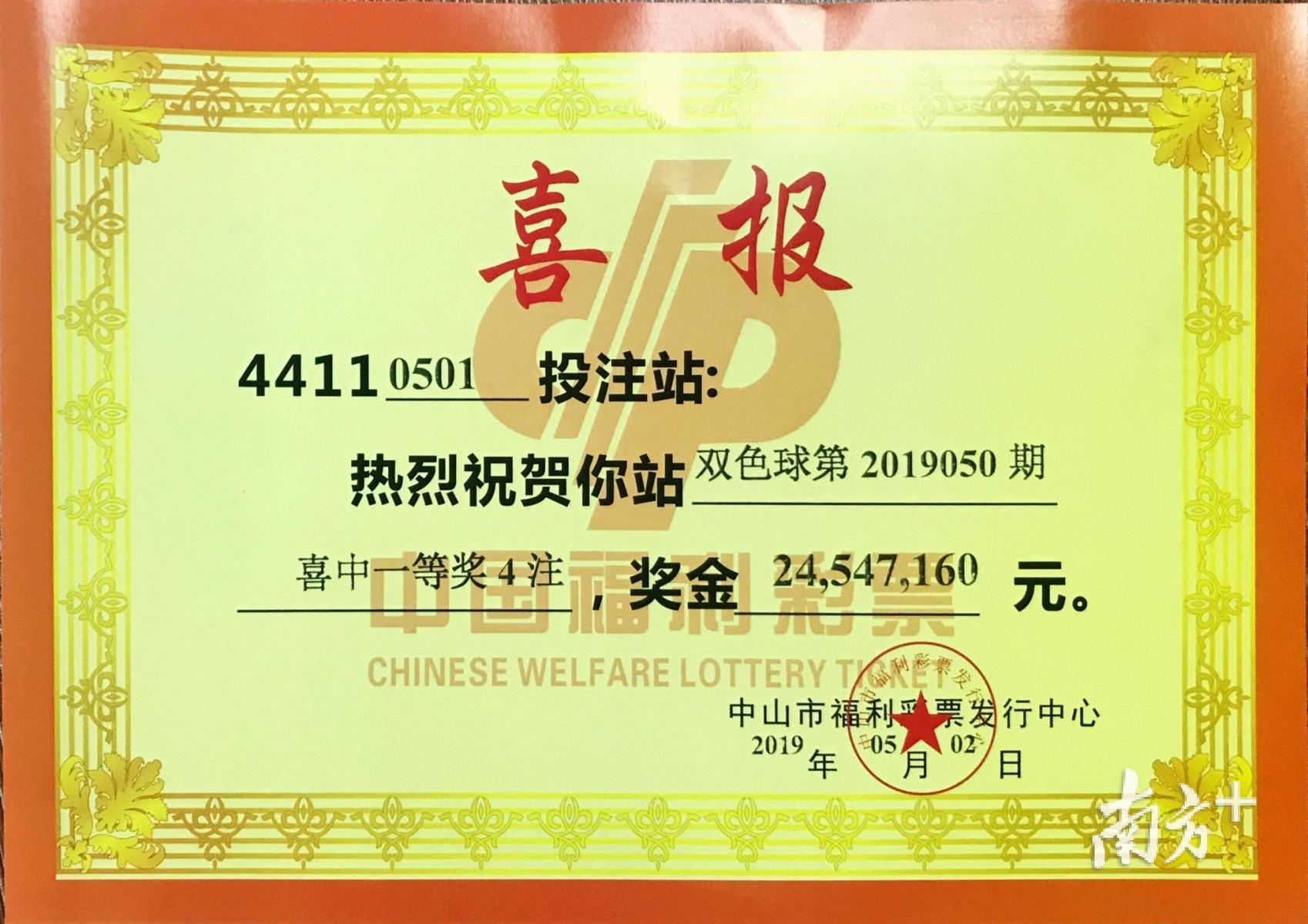 经省福彩中心检索,该中奖彩票为一张8元1注号码4倍倍投彩票。目前中山大奖得主尚未露面兑奖。