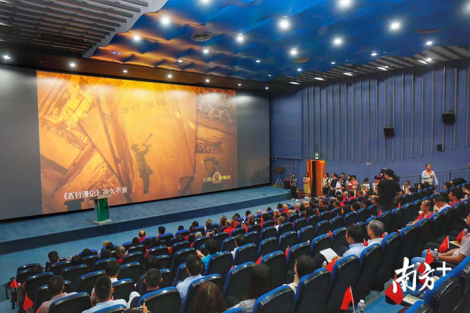 首映式上,主办方、市实验小学少先队员分别向老战士代表送上慰问品、佩戴红领巾敬队礼。期间,老战士代表与老战士后代一起合唱珠江纵队当年队歌《我不能把枪放下》,并观赏刚刚上线的影片《红星照耀中国》。