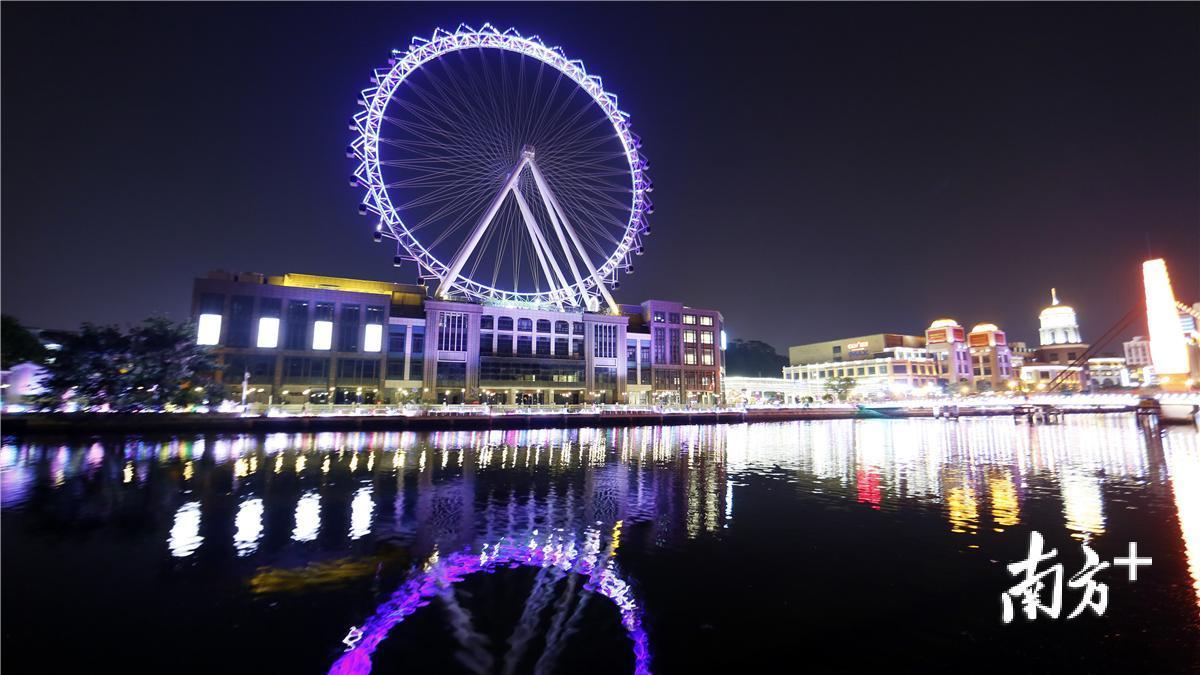 岐江夜景,称得上中山夜间的明信片!兴中广场,是夜晚休闲的好去处,沿岐江散步,兴中广场的欧式圆顶建筑格外亮眼,两岸灯光勾勒出的夜景,七彩斑斓,从远处遥望,就像到了另一个世界。还有高度超过100米的幻彩摩天轮,流光炫影,坐在上面,中山城区尽收眼底,放佛置身童话世界,美得不太真实。