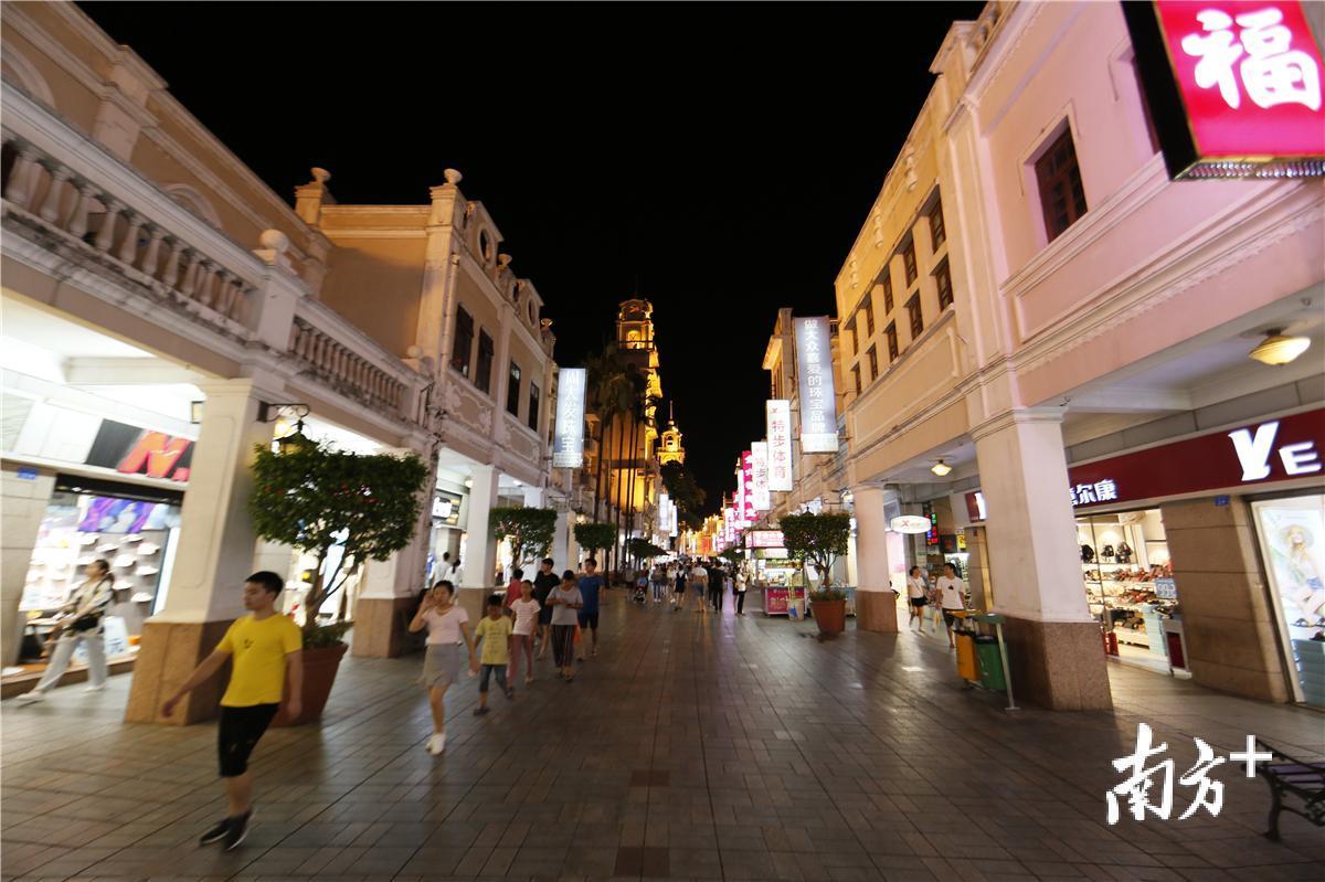 白天的孙文西路步行街,人烟稀少,部分商铺很晚才开门。一到夜晚,灯光点缀,步行街就“换脸”了,骑楼和钟楼,在月光下格外有调调。