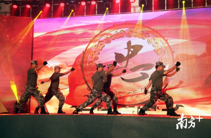 9月3日,中山国防教育基地内掌声雷动,“激扬青春 筑梦军旅”中山市总工会慰问2019年入伍新兵文艺演出在这里举行。中共中山市委常委、中山军分区司令员孔德雨,中山军分区政委王苏辉、中山市总工会常务副主席杜绮玲等领导,与中山市2019年入伍新兵及国防基地教官近700人一起观看了本场演出。
