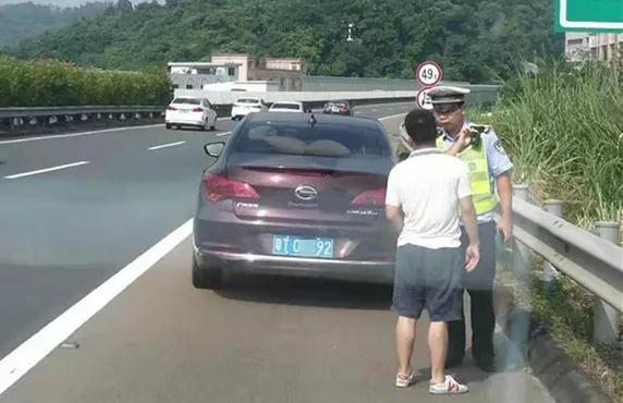 9月15日下午2点52分,一辆粤T1××V2号白色宝马小车停在西部沿海高速40公里500米处,车后没有放置任何警示标志,被高速交警处以罚款200元的处罚,记6分。司机黄某说胎压不正常,想停车看看。▼