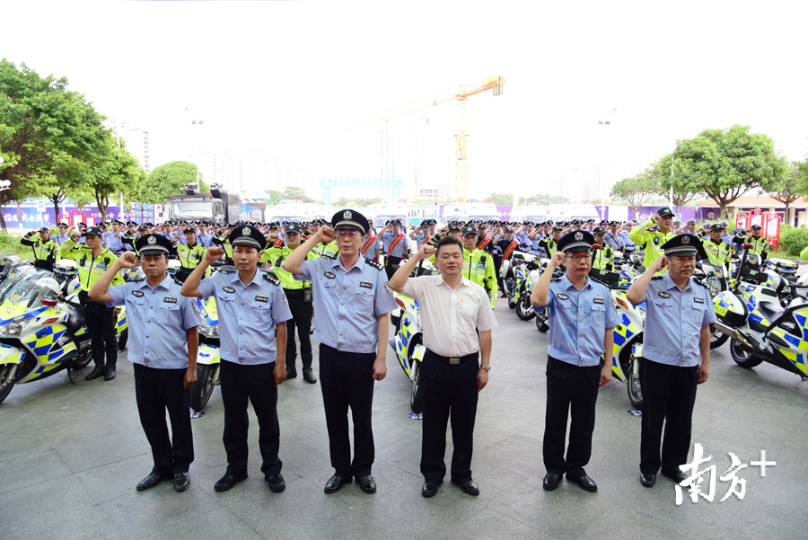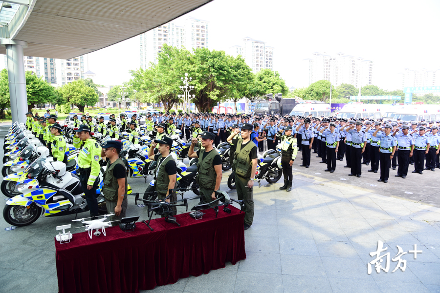 本次誓师大会共200余名民公安干警参加,列阵方队前侧包括交警支队冲锋车方阵、民警方队、警用无人机小组和战训大队方阵;后侧为警用运兵车和防爆水炮车。大会强调,要强化决战阶段重点时段对重点人、车、路段的巡逻盘查,通过合理调配,最大限度将警力投入路面,充实街面一线巡防力量,切实提高见警率,全面遏制社会面各类发案。