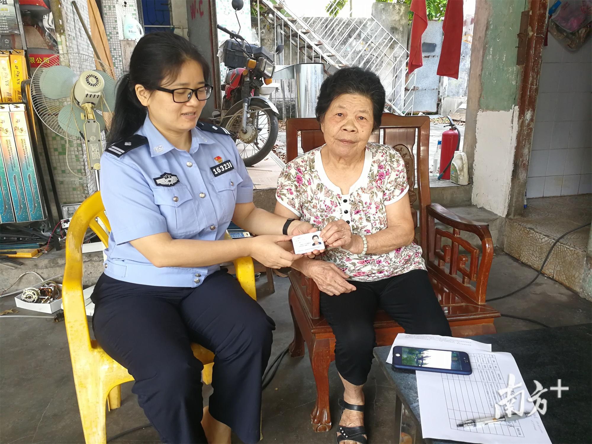 近日,沙溪分局户政办民警在整理身份证时,发现辖区内有几个年老的人员尚未来领取证件,工作人员立即通过电话沟通,了解到有两位老人因年老体弱、行动不便等原因较少出门。为尽快将证件送到居民手上,以方便他们的生活需要,户政民警专程去到辖区内的康桥花地小区、岭后亨村的两位老人家中,将身份证送至老人手里,并认真听取了老人们对公安工作的意见和建议。
