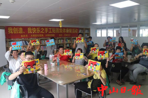 社工欧阳美好告诉记者,手工贴画活动对服务对象的康复训练具有重要意义。不仅可以训练他们的注意力、想象逻辑能力和创造能力而且可以训练到他们的手眼协调等精细动作,同时还可以在制作贴画的过程中认识材料的一些物理性质,如颜色、形状等,接受感觉上刺激和输入。