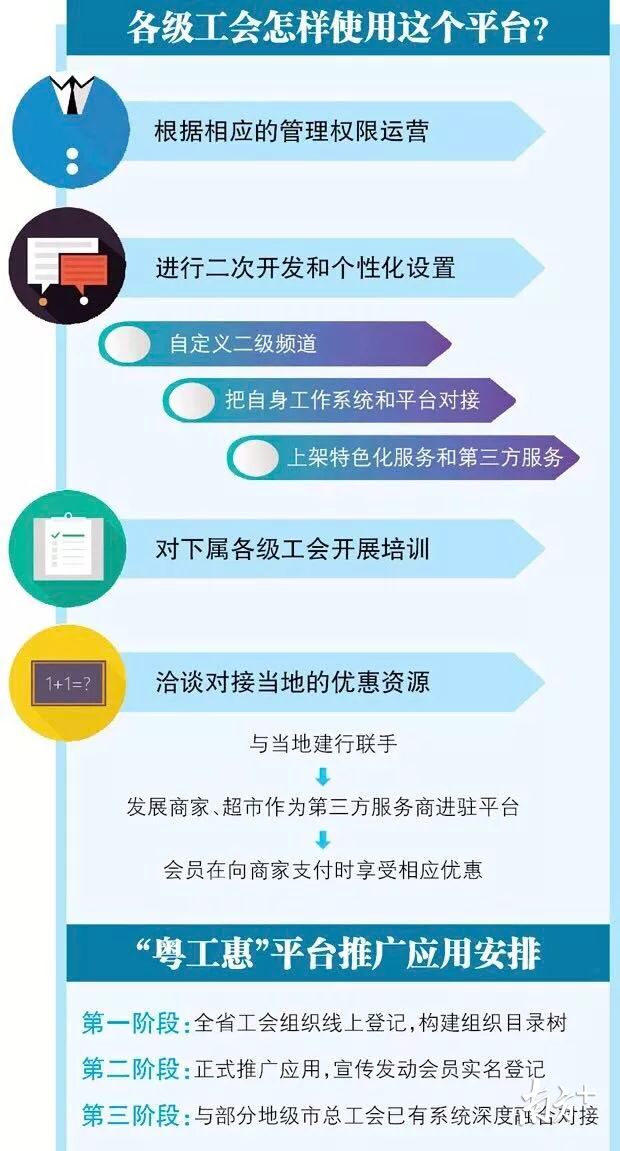 “通过平台,各级工会的福利和服务可以直达工会会员,改变过去工会工作只能顾及劳模和困难职工两端的状况,实现真正的普惠。”据中山市总工会工作人员介绍,工会的品牌工作,包括送温暖、平安返乡、金秋助学、送清凉、学历技能提升补贴、困难补助等,随着平台以后的二次开发,将让会员有更加平等的获得机会。省总工会及市总工会还将开展更多的普惠性活动,让会员在平台上有更大的获得感,对平台产生粘性。