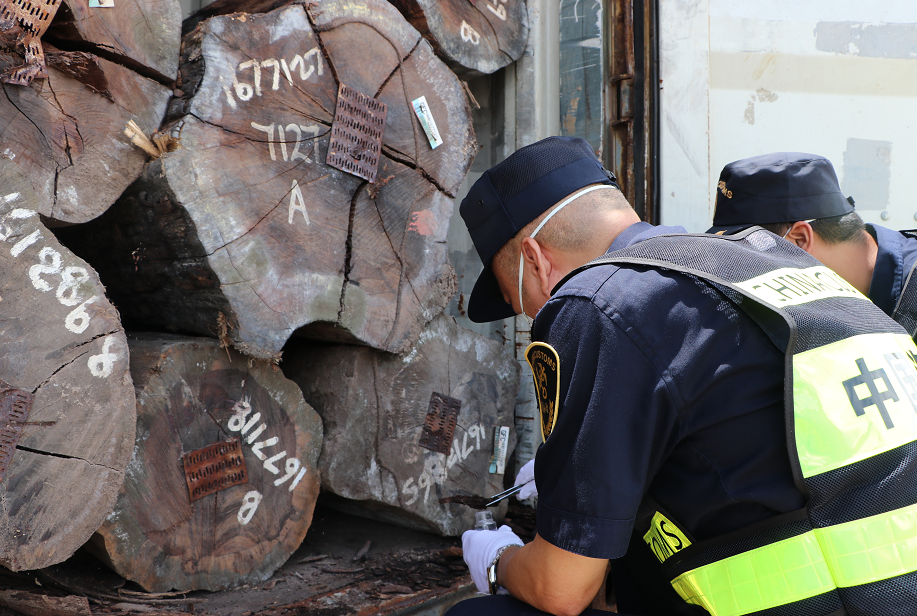 中山港海关监管一科副科长潘朝煌与同事对当天进口的一批进口自莫桑比克的140吨原木进行查验。“我一开集装箱,发现原木边上有许多掉落的树皮,扒开树皮一看,里面躺着不少昆虫尸体,当时就想,难道里面有蝎类出没?”潘朝煌回忆说,“由于以前查验过程中也出现过类似情况,所以大家根据经验猜测这一批木材中可能有蝎子。”随后,他们更加仔细地检查木材缝隙和树皮碎块,果然发现有一只背黑足黄尾短的蝎子藏在木皮夹缝。此外,现场关员还发现一只黑底红纹的活蛙。据关员回忆,该只活蛙被发现时正在集装箱底部的几根原木间敏捷地爬行。