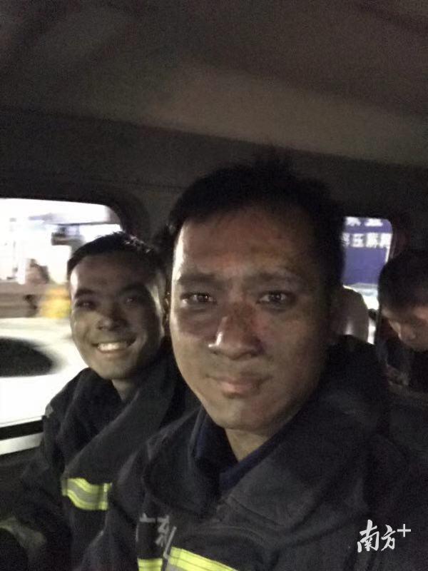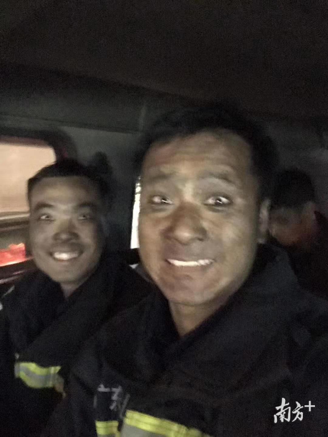 作为经常出入火场的消防员,像这种被熏成”黑人”的经历再寻常不过。梁强华说,“当时并没想太多,只是想确保被困人员的安全,尽快把人救出来。”