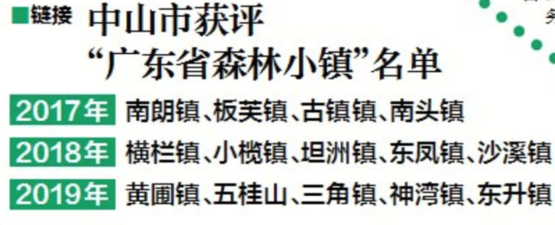其中,中山将加强指导五桂山、南朗、小榄等14个已获评“广东省森林小镇”的镇区发挥品牌示范作用,继续深化森林小镇建设,抓好改善生态环境,真切发挥森林小镇带动经济、社会、文化发展的作用。
