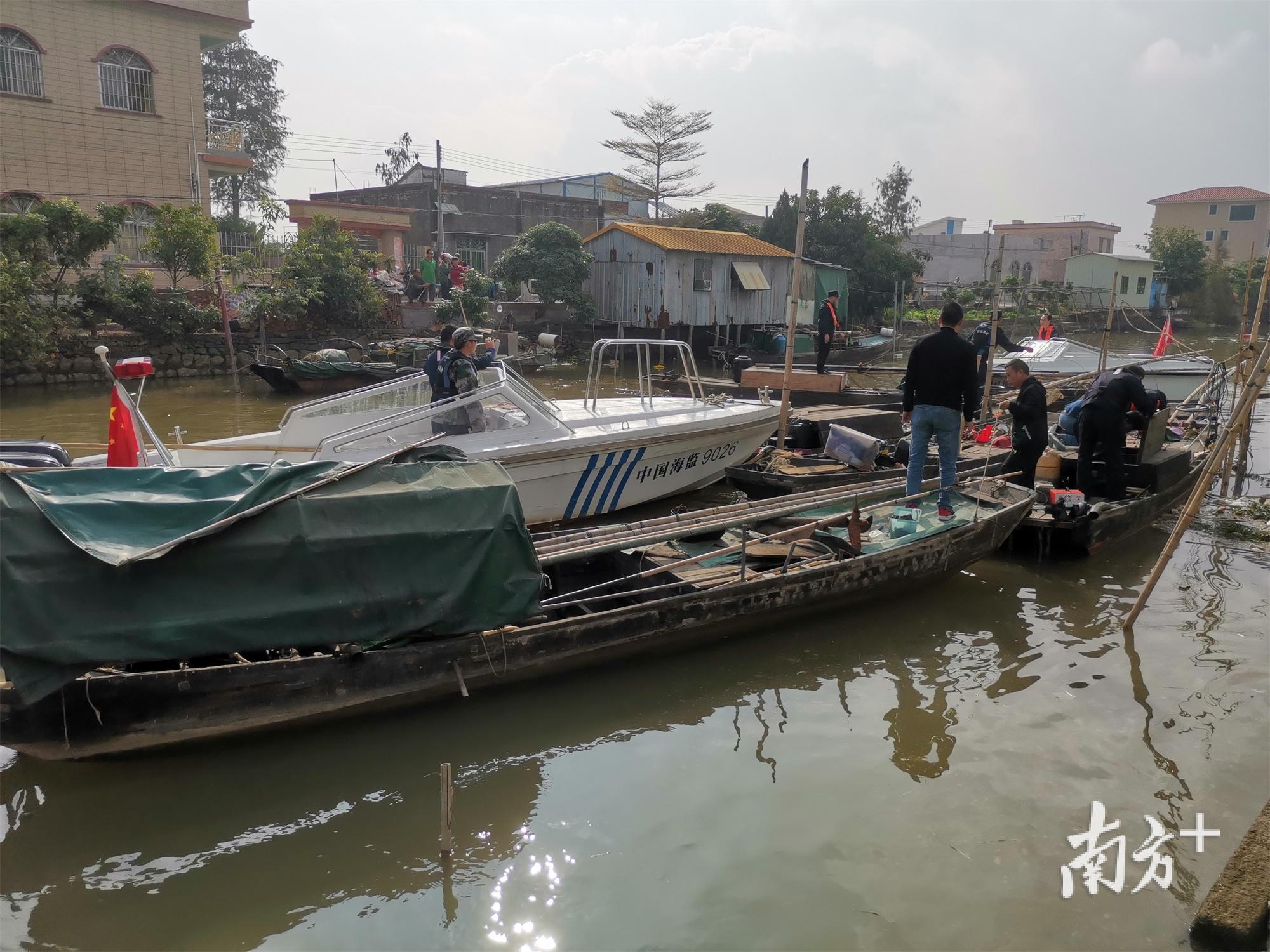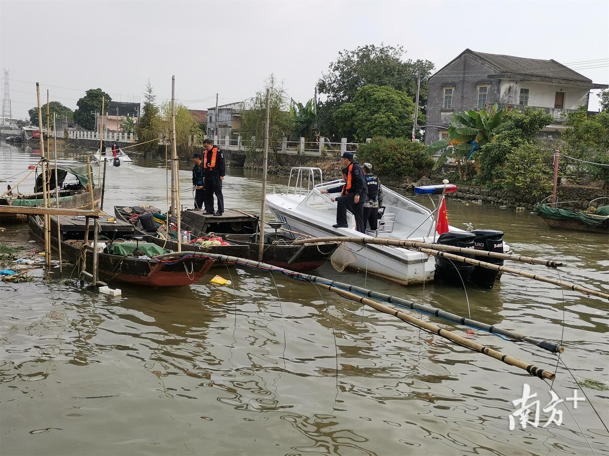 渔政执法人员立即联合民众镇农业农村局开展深入调查,初步掌握了该河涌“三无”电鱼船只的数量和停泊情况。