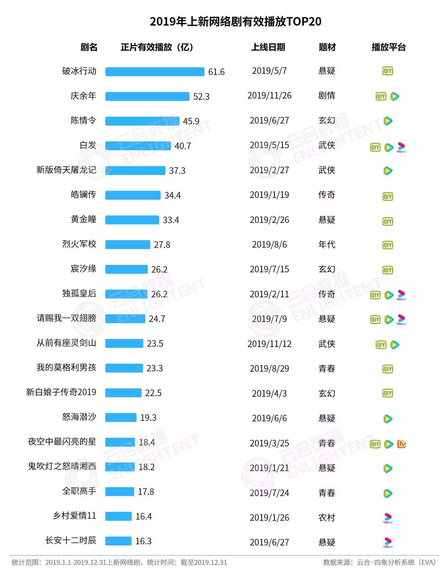 2020年刚过去一周,2019年剧集行业的盘点出炉了。记者刚刚从云合数据获悉,整部剧80%在中山取景拍摄的电视剧《破冰行动》以61.6亿位居2019年上新网络剧有效播放霸屏榜榜首。