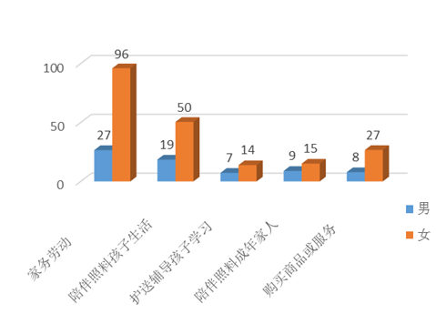 无酬劳动,包括家务劳动、陪伴照料孩子生活、护送辅导孩子学习、陪伴照料成年家人、购买商品或服务、看病就医、公益活动。