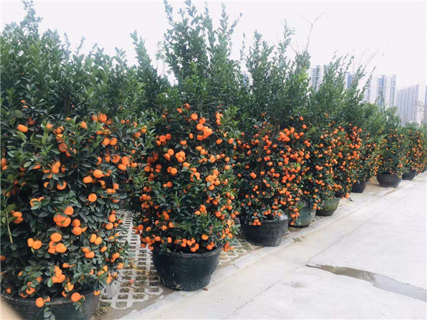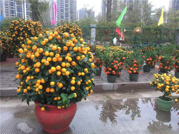 冯先生的档口长达数十米,全部售卖自种年桔。“我们从佛山过来,这几天已经有不少企业来选购。”冯先生介绍,今年入冬迟缓,适宜的气候不但使年桔长势越来越茂盛,而且果实大颗饱满。价格方面,直径70cm、高1.8米左右的大型年桔售价530元/盆,直径80cm、高2米左右的年桔售价1200元/盆。