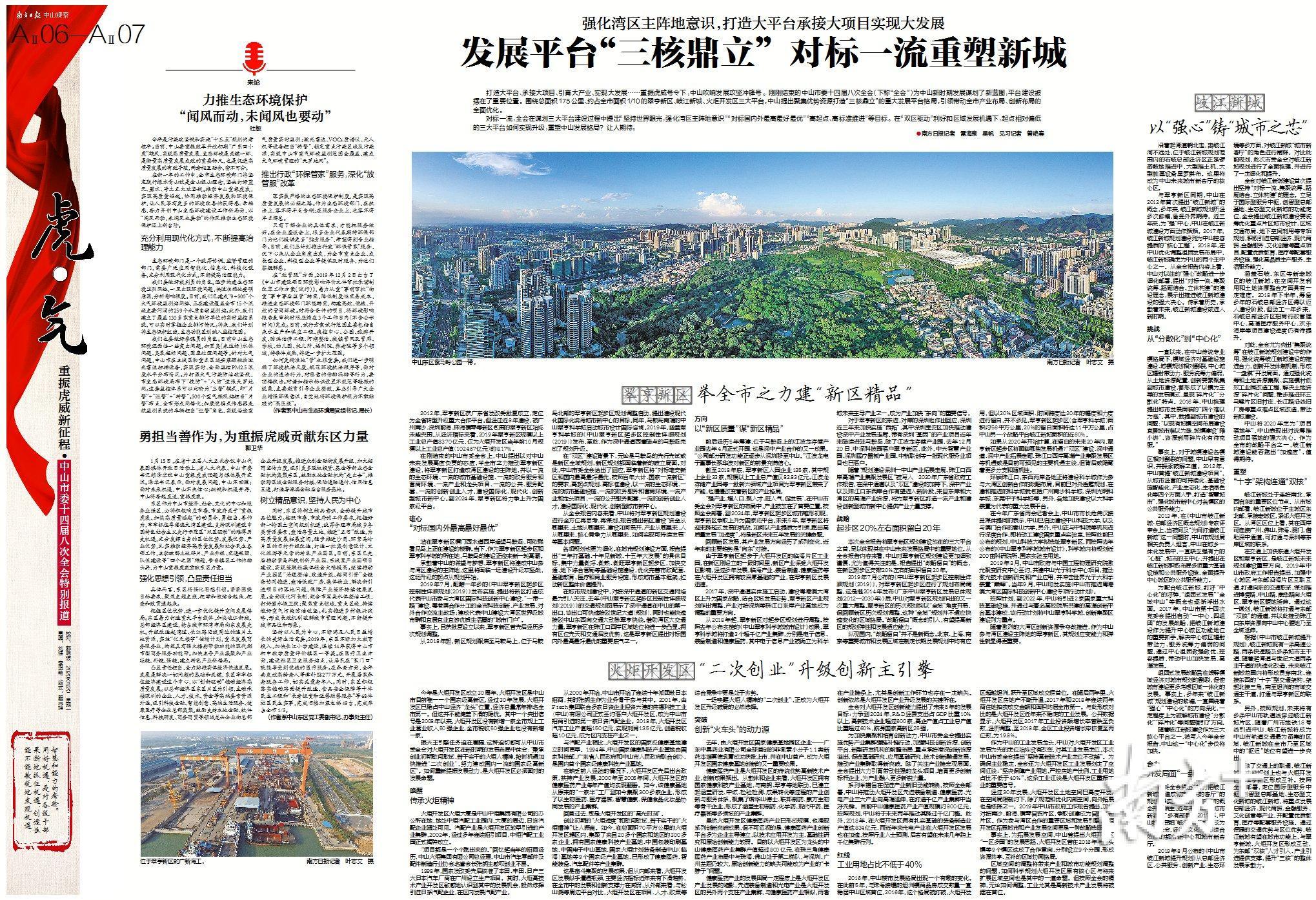 打造大平台、承接大项目、引育大产业、实现大发展……重振虎威号令下,中山吹响发展攻坚冲锋号。刚刚结束的中山市委十四届八次全会(下称“全会”)为中山新时期发展谋划了新蓝图,平台建设被摆在了重要位置。围绕总面积175公里、约占全市面积1/10的翠亨新区、岐江新城、火炬开发区三大平台,中山提出聚集优势资源打造“三核鼎立”的重大发展平台格局,引领带动全市产业布局、创新布局的全面优化。