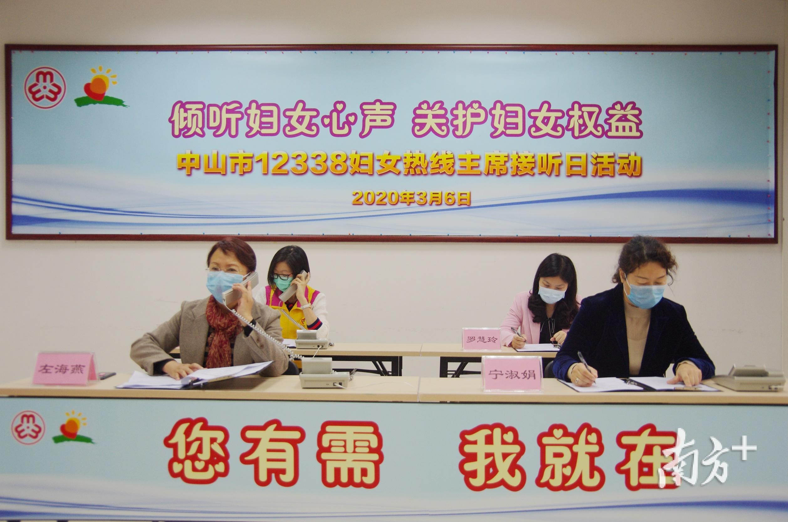 3月6日上午,中山市各级妇联共同开展“倾听妇女心声,关护妇女权益”12338妇女热线主席接听日活动,中山市妇联主席左海燕、广东省妇女维权与信息服务站(中山站)成员、律师志愿者共同参与活动。