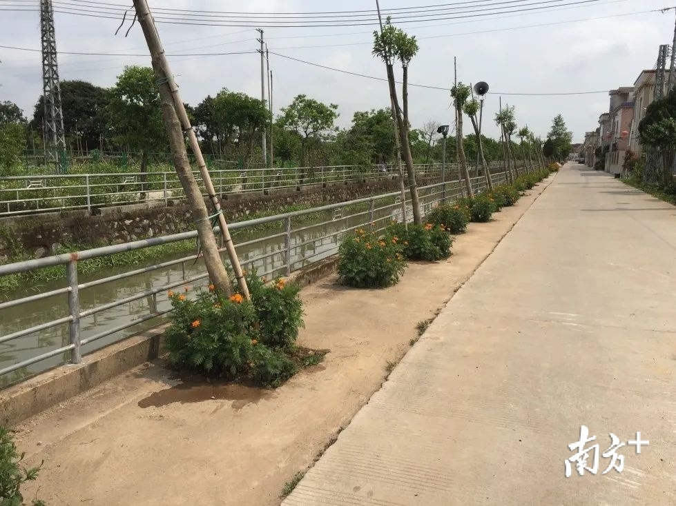 该镇上网村内河道纵横,村民沿河而居,河岸两旁久而久之就变成了生活垃圾、杂物的堆放场所,这不仅影响环境,还滋生蚊虫,易引发火灾。面对这一情况,上网村村委带领村民在河涌两岸植树种花,将一河两岸变为一道整洁美观的风景线。