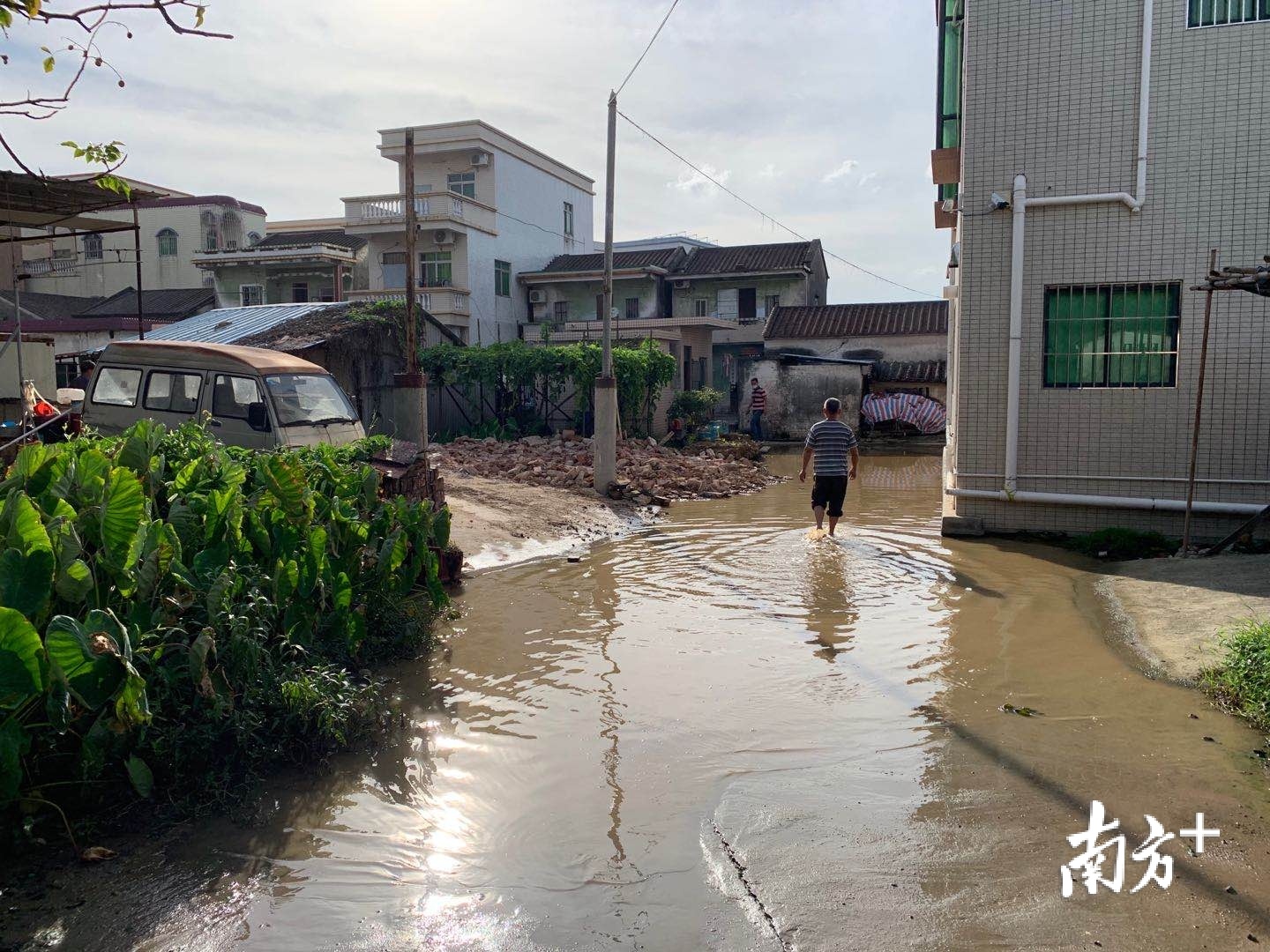 裕祥村村民阿明就住在“新村仔”的一条分支路上,路面最窄的地方不足两米宽。他告诉记者,这条路不仅狭窄,因为路面没有硬底化,也没有建设排水设施,所以“逢雨必浸”,雨大的时候,积水曾经没过膝盖。记者现场看到,即便是没有下雨,因为地势低洼,这条小路的部分路段依然有成片积水。
