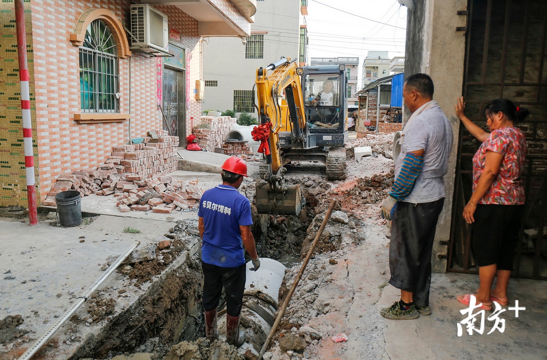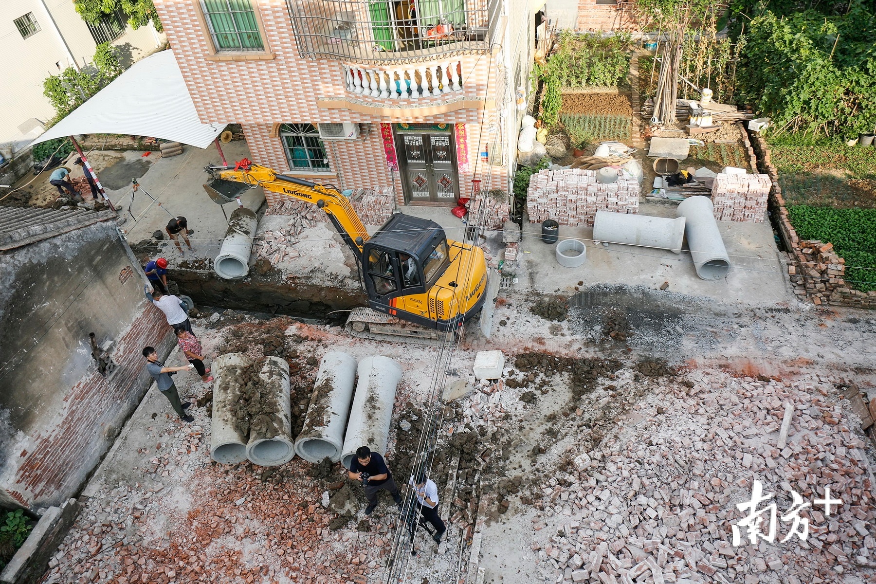 7月13日,裕祥村“新村仔”,道路硬底化施工正在进行中。南方日报记者 叶志文 摄。